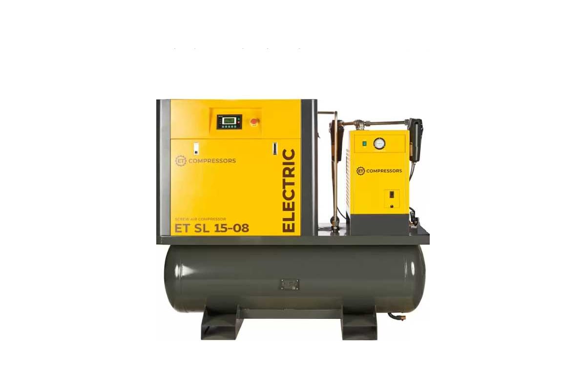 Масляный винтовой компрессор с осушителем ET SL 15-08-410 ES (IP55) с ресивером на 410 литров и прямым приводом, при мощности двигателя 15 кВт достигает производительности 2300 л/мин. Рабочее давление 8 атмосфер обеспечивает стабильное и чистое сжатие, идеально подходящее для применения в различных областях, где чистота воздуха играет ключевую роль. Страна производства: Китай.