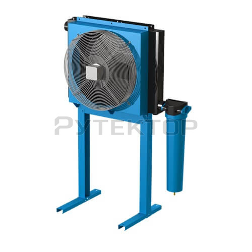 Сжатый воздух, проходя через данное устройство, охлаждается направленным потоком окружающего воздуха от встроенного вентилятора до температуры всего на 3 градуса, превышающей температуру окружающей среды. Выделяющаяся в процессе охлаждения влага (около 75-80%) удаляется с помощью циклонного сепаратора с автоматическим сливом конденсата, входящего в комплект поставки.