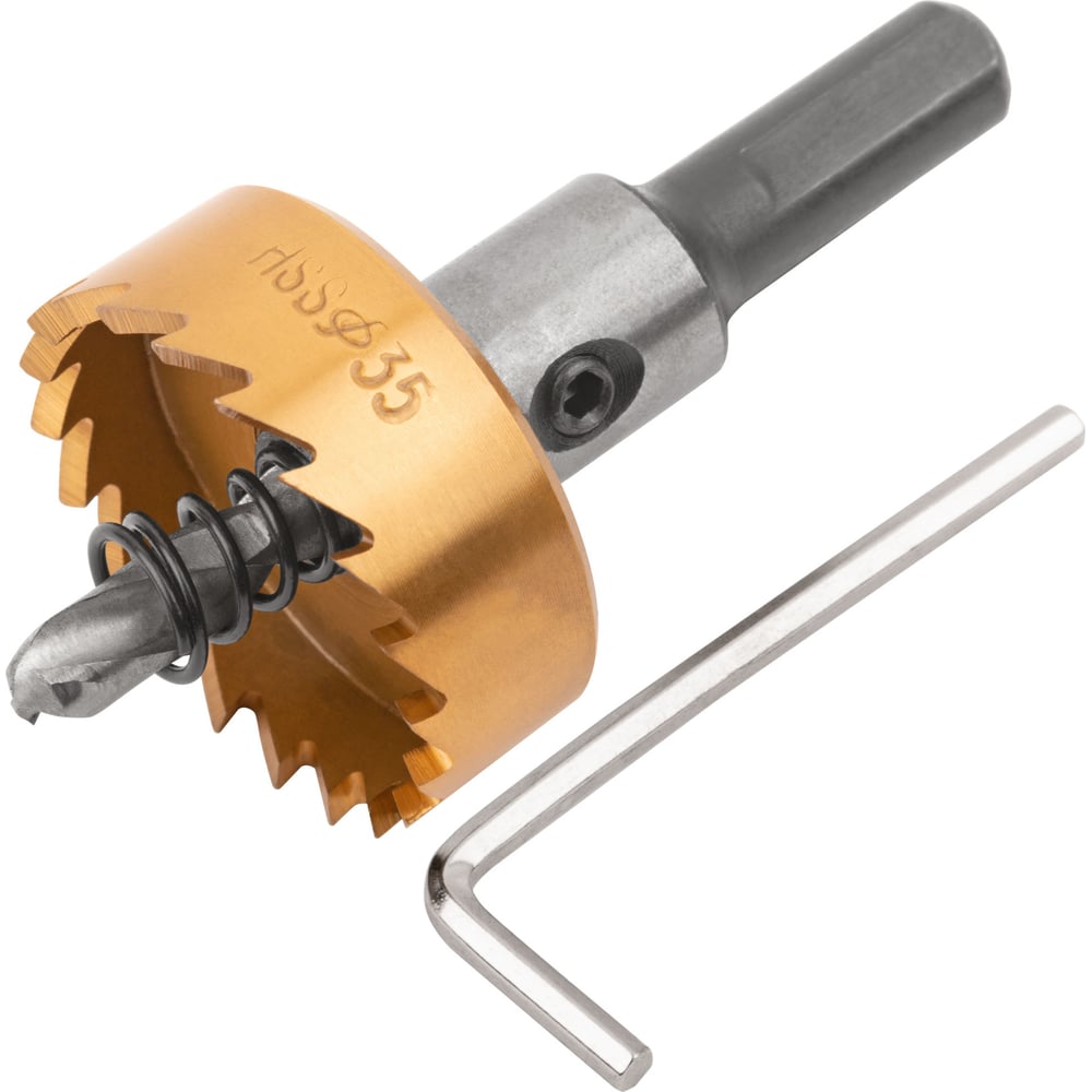 Коронка кольцевая по металлу 35 мм, HSS сталь, титановое покрытие FIT 36870 предназначена для вырезания круговых отверстий в стали, цветных металлах и пластике. Центрирующее сверло из быстрорежущей (HSS) стали; Коронка из быстрорежущей (HSS) стали с титановым покрытием; Хвостовик из инструментальной стали. Внимание, изображение товара может отличаться от реального! Верные параметры указаны в технических характеристиках товара.
