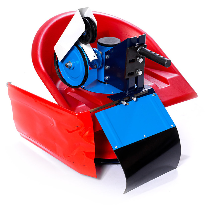 Рабочий орган косилки состоит из одного большого диска и трех сменных ножей. Привод агрегата осуществляется от вала отбора мощности двигателя мототехники через клиноременную передачу. Управление приводом производится дистанционно вручную посредством перемещения рычага, устанавливаемого на руле мотоблока. Порядок установки косилки на технику подробно описан в Руководстве по эксплуатации изделия.