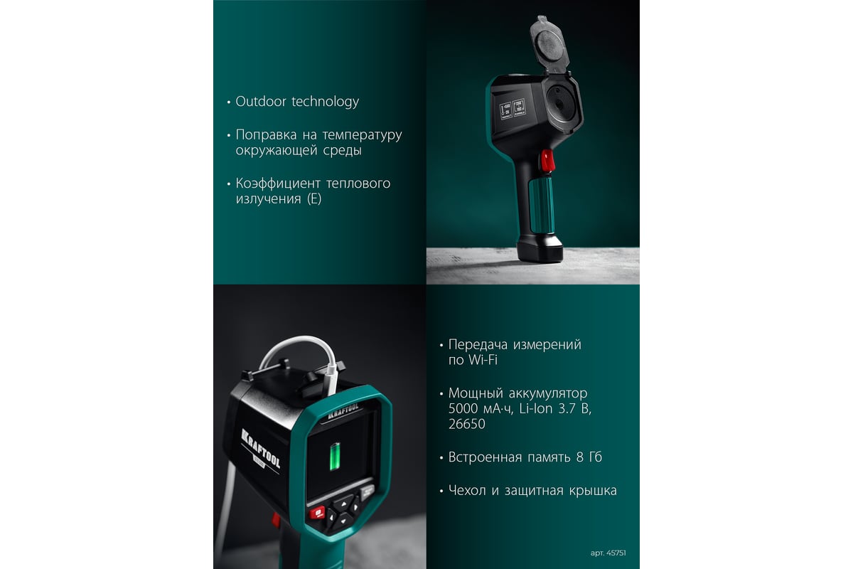 Тепловизоры KRAFTOOL обеспечивают точное обнаружение и локализацию утечек или дефектов ограждающих конструкций, незаменимы для профилактического и предупредительного обслуживания, диагностики состояния зданий, а также для исследований и разработок.