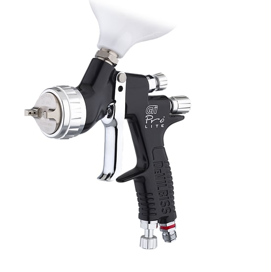 • универсальная конструкция корпуса краскораспылителя DeVilbiss GTIPRO LITE позволяет укомплектовывать его различными воздушными головами для получения того или иного эффекта при окраске.