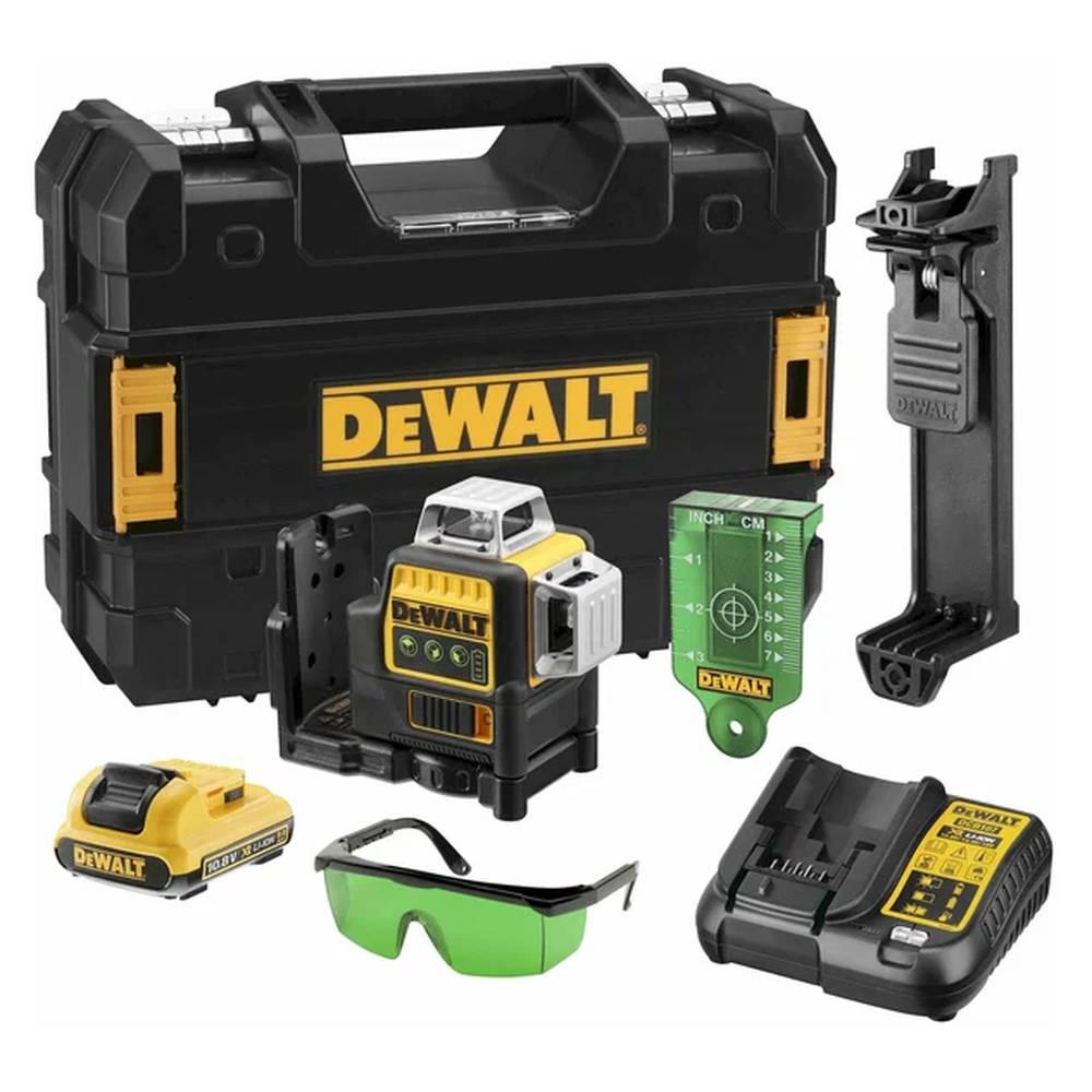 Лазерный уровень DeWaltDCE089D1G предназначен для построения плоскостей на строительных площадках внутри и снаружи помещений. Прибор проецирует 1 горизонтальную плоскость 360° и 2 вертикальных 360°. Инструмент работает от оригинального сменного аккумулятора 10,8 В.
