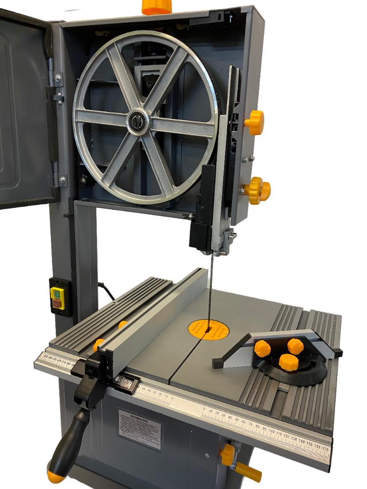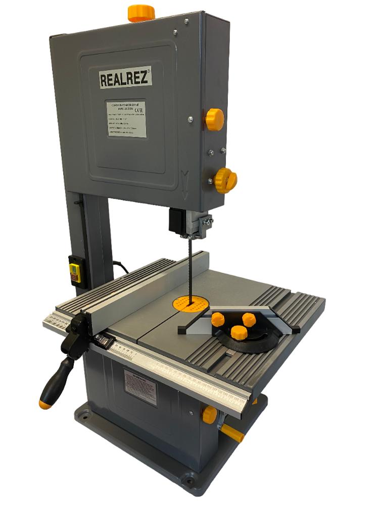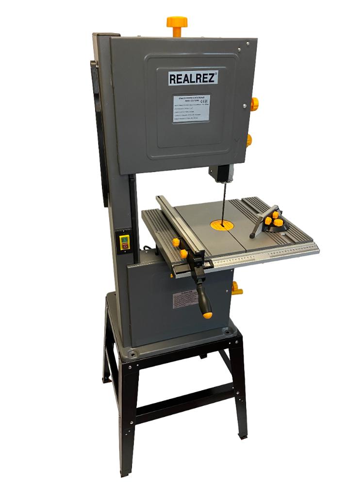 Ленточнопильный станок по дереву REALREZ RWBS 130-750W – отличный вариант для выполнения пакетного резания, по кривой, продольного и поперечного резания и под углом. Мощность станка составляет 750 Вт.