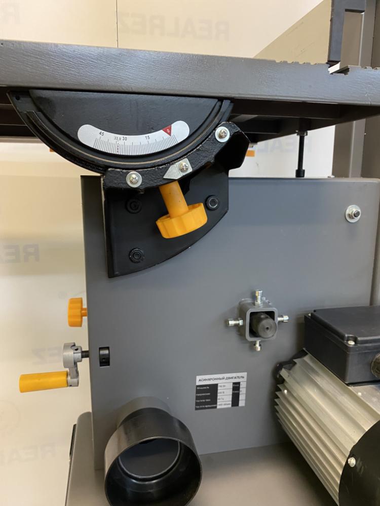 Жеский литой стол станка гасит вибрации и отличается износостойкостью. Пластиковый угловой упор точно задаёт наклон заготовки, а алюминиевый параллельный упор позволяет без предварительной разметки резать детали. Так же станок подразумевает переключение между двумя скоростями пильного полотна: 378 и 792 м/мин. Для подключения стружкоотсоса предусмотрен один патрубок диаметром 95 мм.
