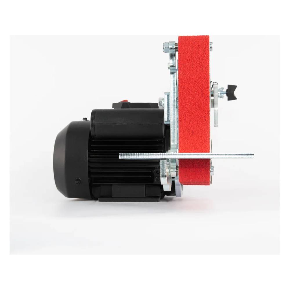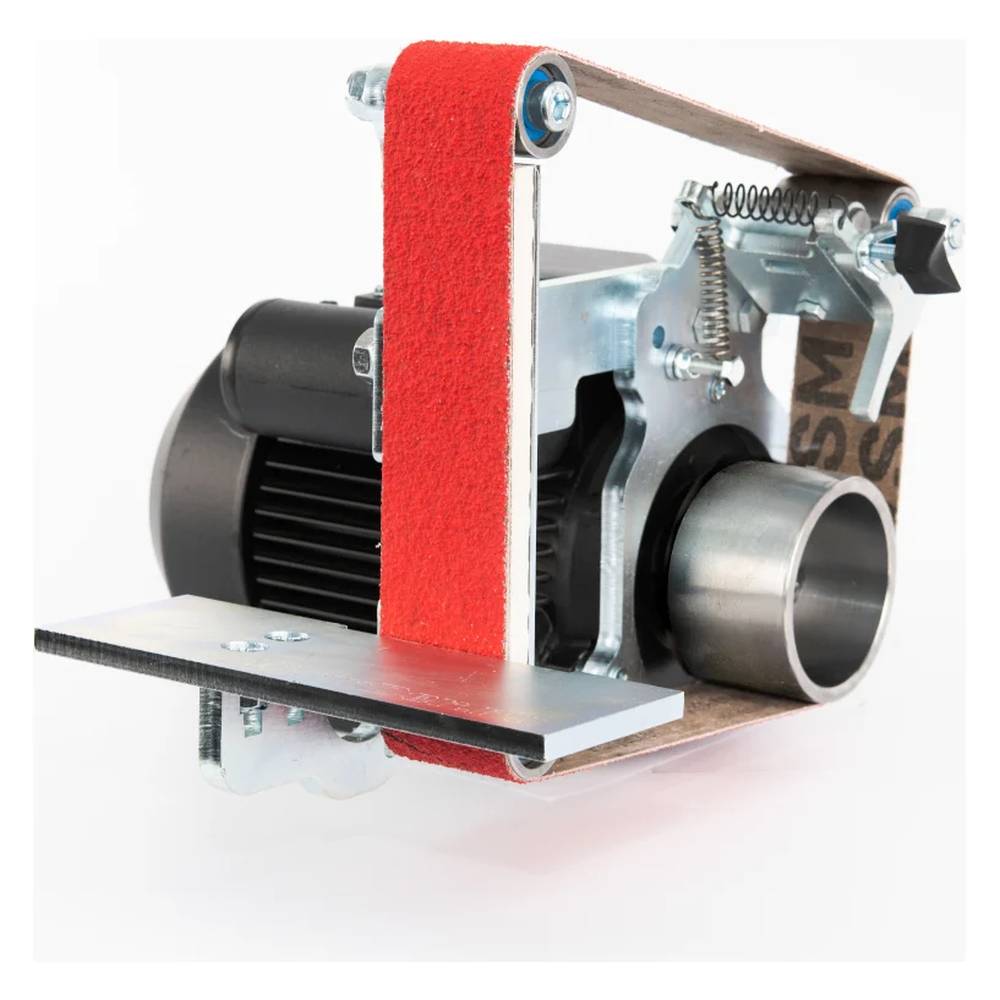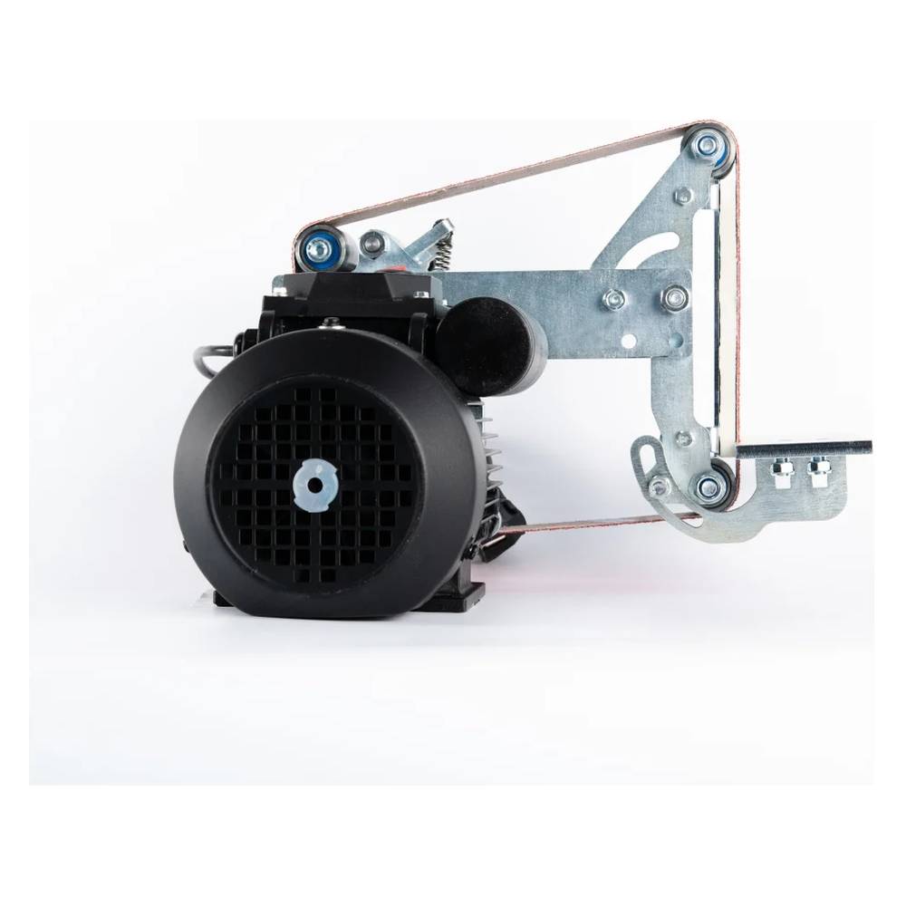 Благодаря увеличенной длине абразивной шкурки, возможно производить обработку материала не только при помощи упорной площадки, но и на провисающей ленте. Станок имеет увеличенную вертикальную рабочую поверхность 180 мм, усиленный каркас из стали 10 мм и уникальный запатентованный механизм натяжения ленты.