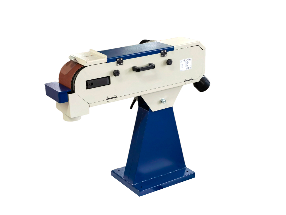 Станок в стандартной комплектации оснащен всасывающей муфтой для отходов. Размер шлифовальной ленты – 150 x 2000 мм, мощный двигатель – 2.8 кВт. Модель B1-S6 имеет 1 скорость движения ленты: 30 м/сек, а 2 прорезиненных круга обеспечивают хорошее сцепление с шлифовальной лентой.