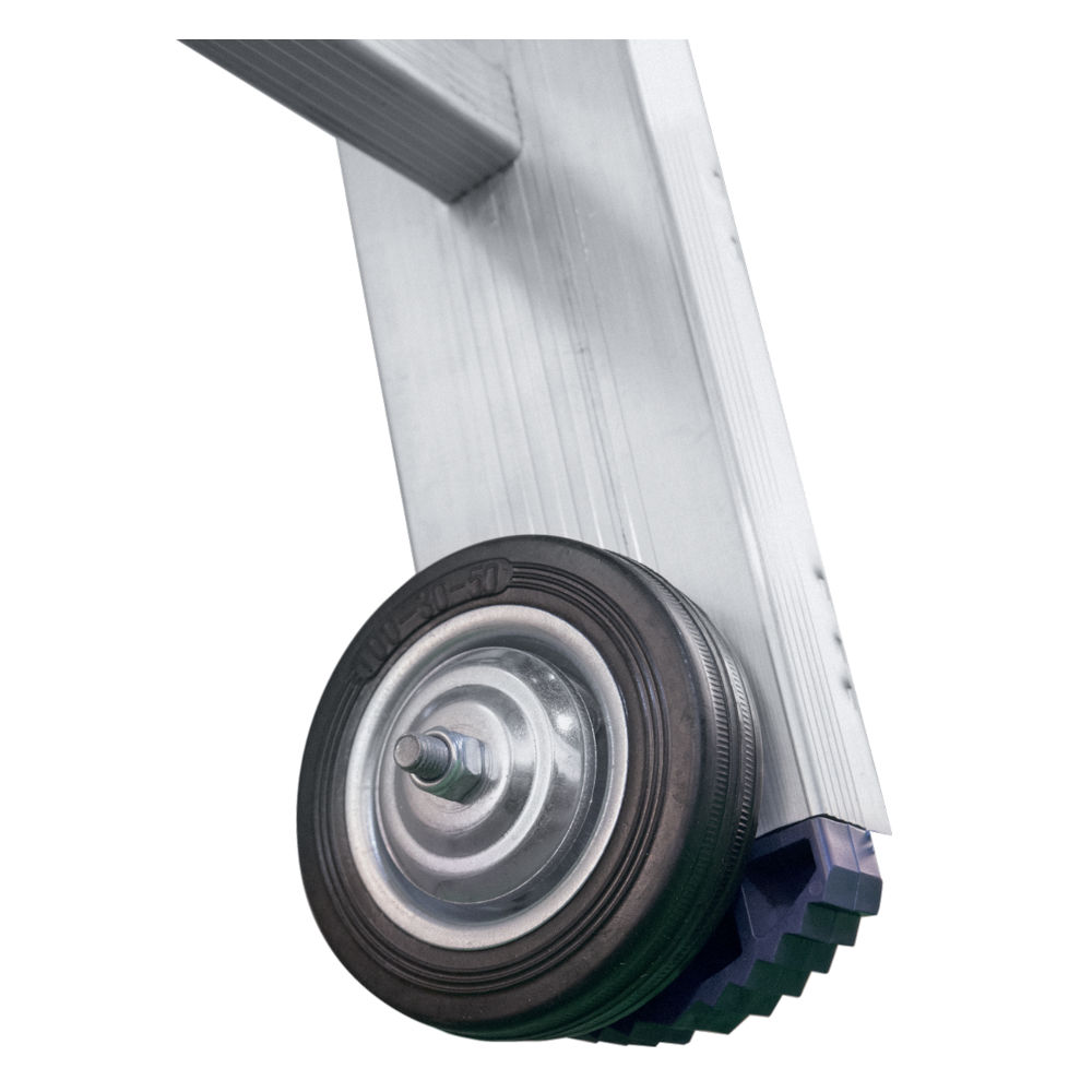 - Колеса - передвижение верхней секции по стене осуществляется с помощью колес, что облегчает установку лестницы в рабочее положение