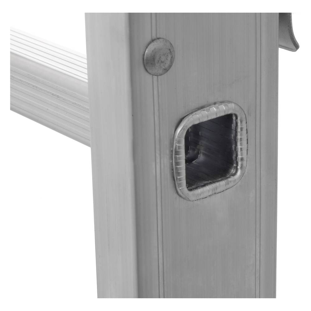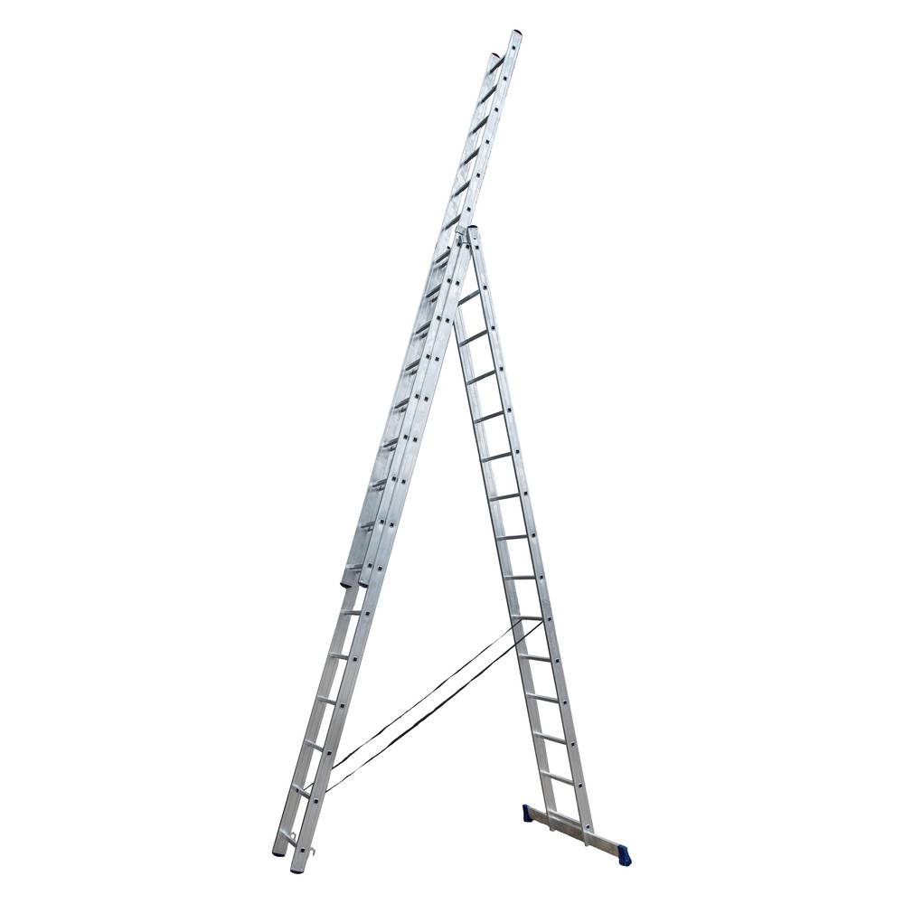 Лестница алюминиевая STAIRS ПРОФИ трехсекционная 17 ступеней (ALP317) это многофункциональная лестница, мобильная и простая в использовании. Лестница серии «ПРОФИ» отличается усиленным профилем с толщиной стенок 1.4мм. Лестница из трех секций обладает наибольшей рабочей высотой. Лестница может служить раздвижной, двухсекционной, стремянкой с выдвижной секцией, и отдельной приставной лестницей, так как верхняя секция легко вынимается. Каркас и ступени изготовлены из алюминиевого сплава. Алюминиевый сплав делает лестницу легкой, но при этом прочной за счет увеличенной износостойкости материала. Алюминий не подвержен коррозии, что позволяет использовать лестницу как в помещении, так и на открытом пространстве.