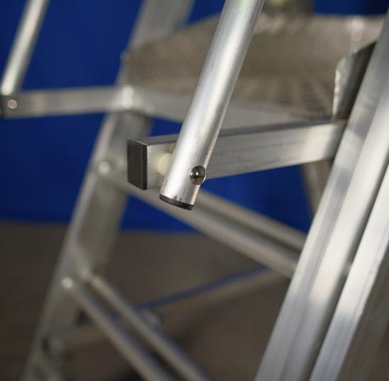 Лестница - платформа телескопическая MEGAL ТЛП (2,1 - 3,7) представляет собой безопасную и легкую конструкцию из алюминиевых профилей высокой прочности. Предназначена для работ в торговых залах, на складах, вдоль стеллажей и других объектов, при проведении ремонтных, монтажных и иных работ на возвышении. Лестница имеет легкий вес за счет использования алюминиевых сплавов. Лестница имеет регулируемый диапазон рабочих высот за счет изменения высоты рабочей площадки. Трехстороннее ограждение площадки со встроенной защитной планкой в районе колен, бортовое ограждение, ступени из рифленой трубы обеспечивают безопасный подъем, спуск и проведение работ. Заход на площадку имеет съемную цепочку. Площадка размером 680х510мм позволяет удобно расположиться рабочему с необходимым инструментом. Складная конструкция позволяет осуществлять простую и быструю сборку. Небольшая занимаемая площадь и прочные поворотные колеса со стопорами позволяют легко маневрировать в ограниченном пространстве.