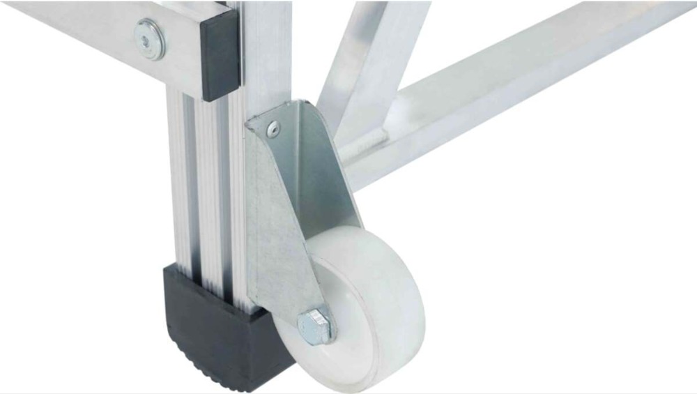 Лестница подмости MEGAL ЛП-0,6 с двумя поручнями используется при выполнении монтажных, сервисных и других работ на небольших высотах. Широкие ступени глубиной 160 мм из специального рифленого профиля для безопасности подъема и комфорта в работе. Верхняя площадка размером - 0,600х0,675 м. Наклонный лестничный марш под углом 45 градусов. Для удобства подъема подмости оснащены двумя поручнями. Высокая грузоподъемность обеспечивается за счет использования труб и профилей со стенкой не менее 2,5мм. Ножки подмостей имеют резиновые противоскользящие башмаки. Для удобства перемещения подмости оснащены колесами.