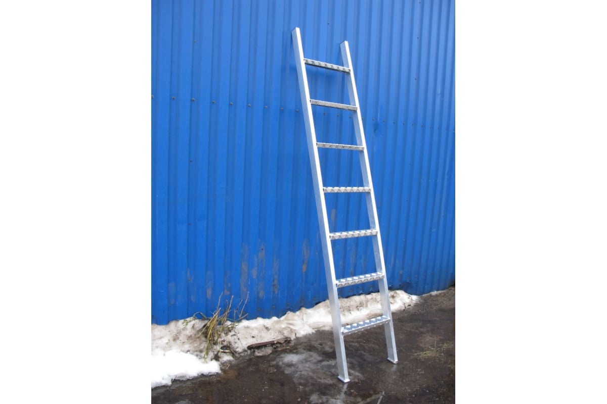 Ступени шириной 45 см и глубиной 7.2 см, выполненные из рифленого листа "квинтет", обеспечивают безопасный и удобный подъем и спуск.