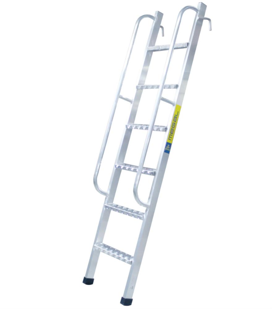 Лестница приставная стеллажная MEGAL ЛПС - 4,0 с поручнями предназначена для обеспечения безопасного доступа обслуживающего персонала к стеллажным системам различно высоты. На верхних концах тетив имеется 2 крюка для навешивания используемой лестницы на трубу (профиль). Снизу лестница оснащена резиновыми противоскользящими башмаками. Удобные ступени из рифленого листа квинтет обеспечивают комфортный подъем и спуск. Соединения ступеней и тетивы, выполненные посредством аргонно-дуговой сварки, увеличивают надежность и долговечность лестницы. Для безопасного подъема имеются поручни. Высокая грузоподъемность лестницы обеспечивается за счет использования труб и профилей со стенкой не менее 2,5мм.