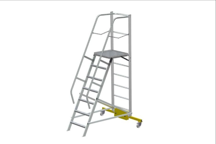 Складная конструкция и транспортировочные колеса обеспечивает простоту перемещения и складирования оборудования в местах проведения работ. Лестница имеет легкий вес за счет использования алюминиевых сплавов.