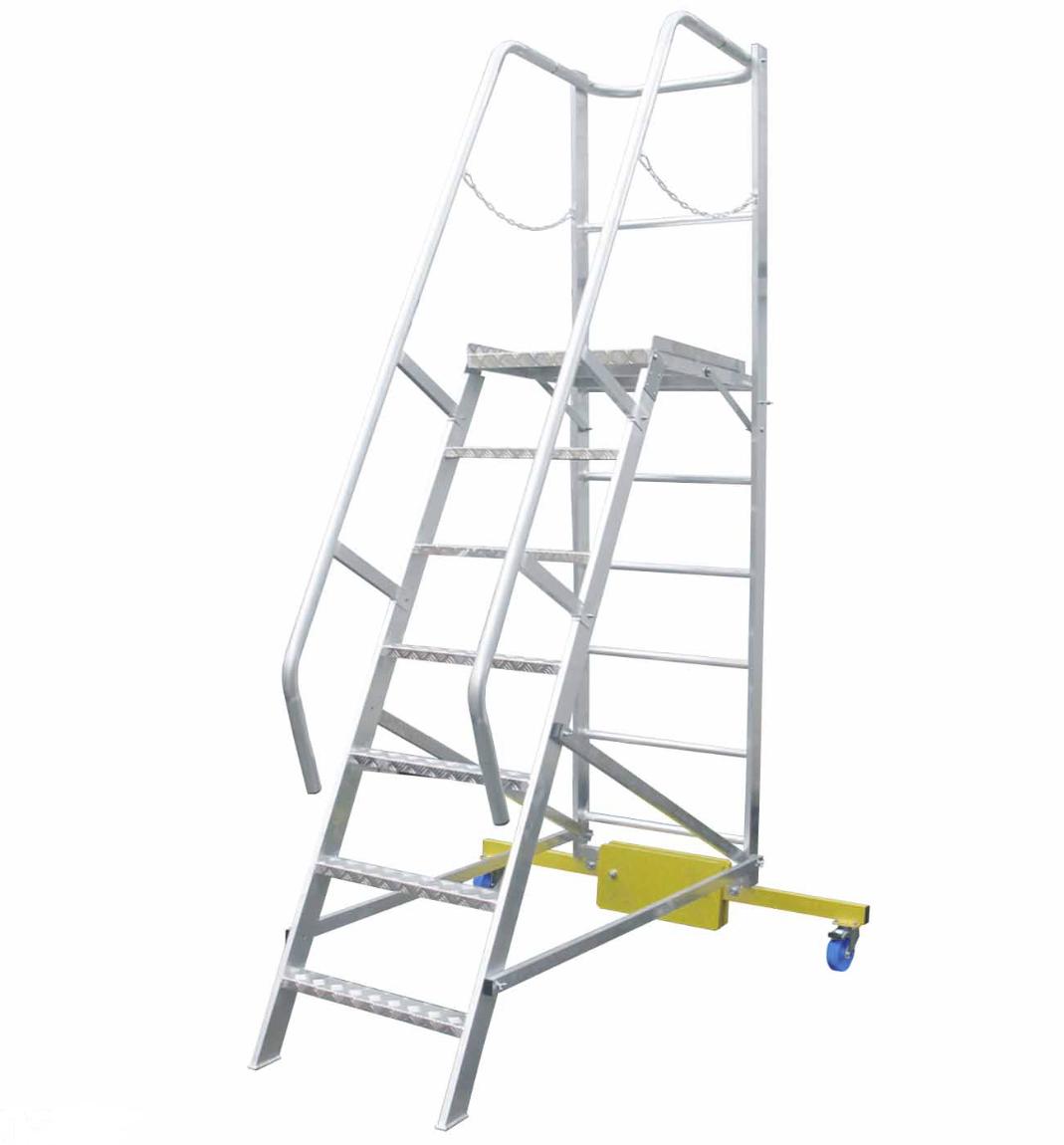 Лестница с платформой компактная MEGAL ЛСПК-2,75 (1,4) предназначена для работ в торговых залах, на складах, вдоль стеллажей и других объектов, при проведении ремонтных, монтажных и иных работ на возвышении. Площадка размером 650х600 мм позволяет удобно расположиться рабочему с необходимым инструментом. Трехстороннее ограждение площадки со встроенной защитной планкой в районе колен, ступени с глубиной 80 мм обеспечивают безопасный подъем, спуск и проведение работ. Складная конструкция и транспортировочные колеса обеспечивает простоту перемещения и складирования оборудования в местах проведения работ. Лестница имеет легкий вес за счет использования алюминиевых сплавов.