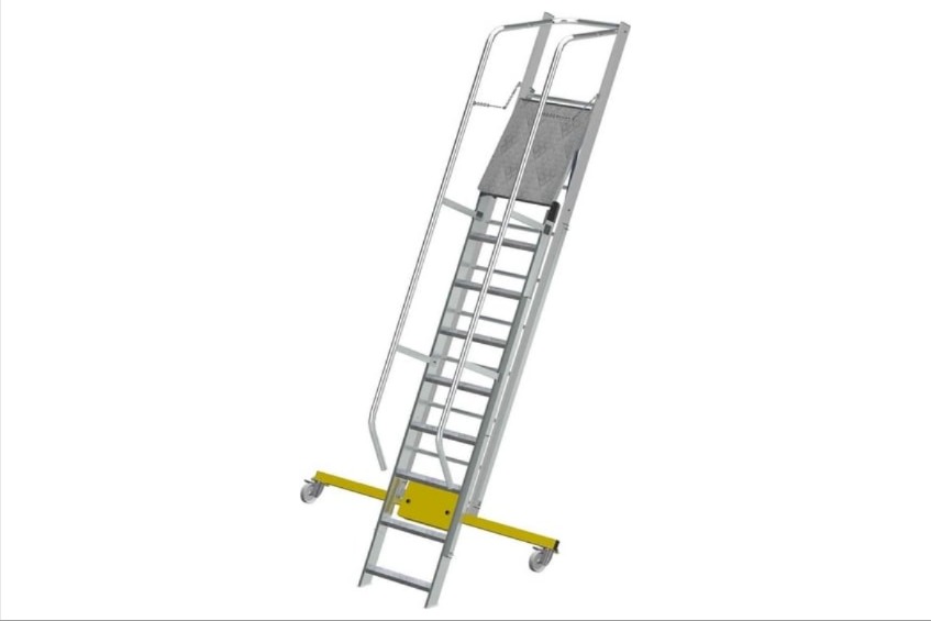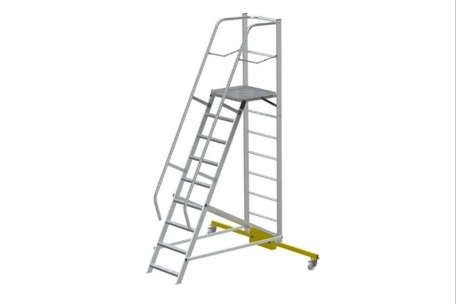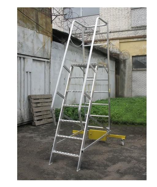 Складная конструкция и транспортировочные колеса обеспечивает простоту перемещения и складирования оборудования в местах проведения работ. Лестница имеет легкий вес за счет использования алюминиевых сплавов.