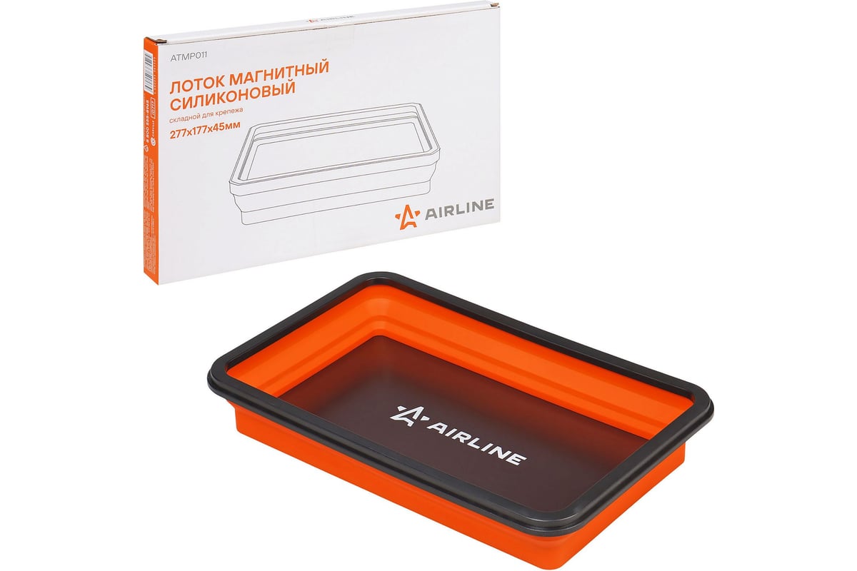 Лоток магнитный силиконовый складной для крепежа 277х177х45мм AIRLINE ATMP011 Лоток магнитный силиконовый складной для крепежа 277х177х45мм предназначен для хранения и размещения небольших деталей, болтов, гаек, шурупов, клипс и прочих метизов во время работы с различными узлами и агрегатами, а также для их хранения.
