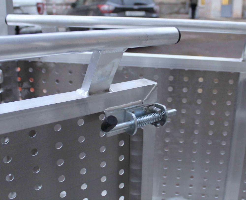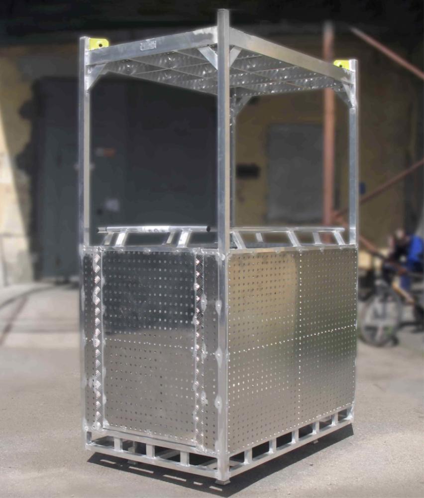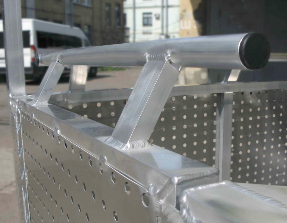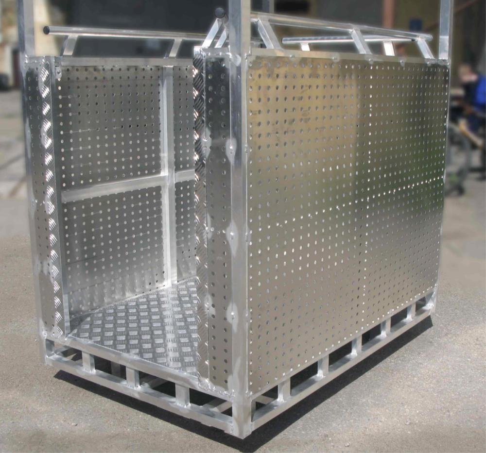 Люлька подвесная алюминиевая MEGAL ЛПА - 2/1 предназначена для подъема электрическим приводом. Позволяет с удобством разместиться четырем человекам с инструментом. Пол кабины выполнен из рифленого листа «квинтет». Кабина люльки окрашена в предупредительные цвета по ГОСТ 12.2.058. Сплошное ограждение из перфорированного листа до высоты - 1,0м. Внутри кабина снабжена поручнями высотой - 1,1м. По внешнему краю люльки образовано пространство, исключающее зажатие ног находящихся рядом людей при опускании кабины на землю.