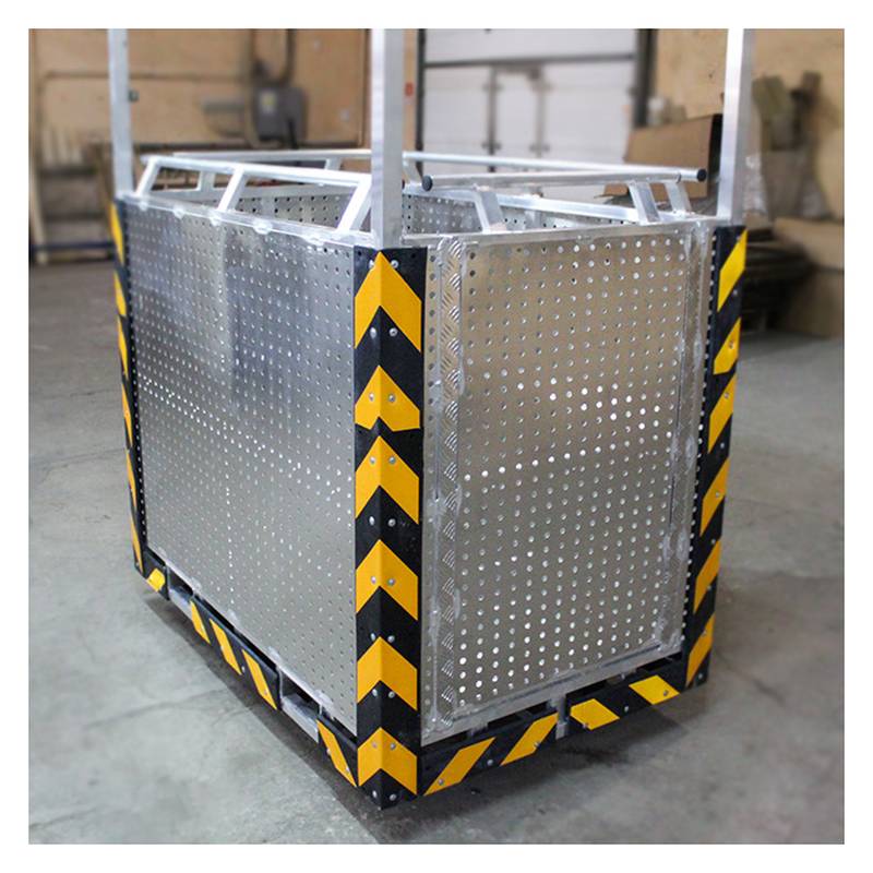 Периметр люльки обшит противоударными резиновыми отбойниками со светоотражающими полосами