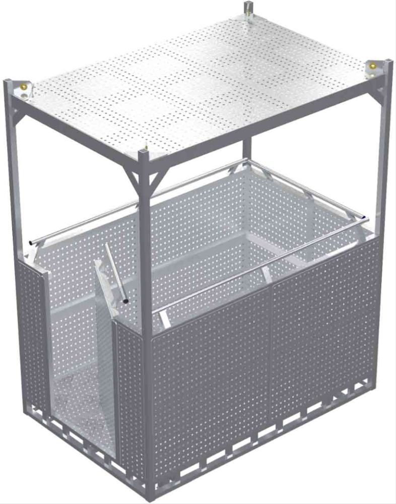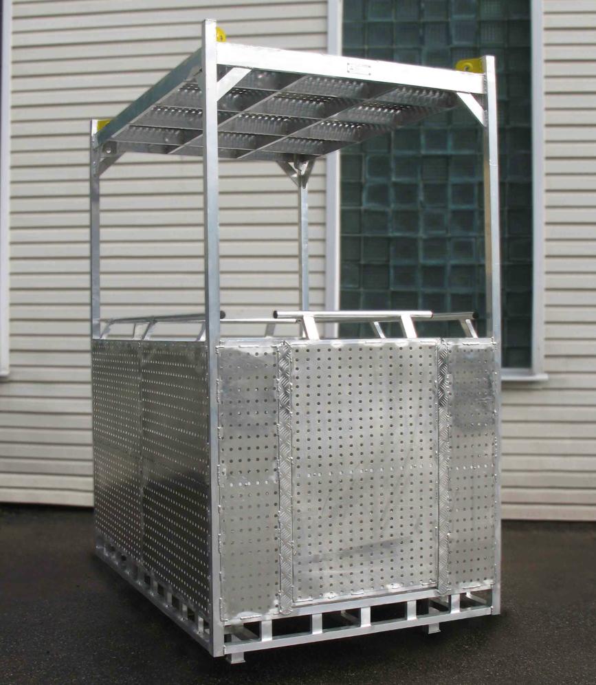 Люлька подвесная алюминиевая MEGAL ЛПА - 4/1 предназначена для подъема электрическим приводом. Позволяет с удобством разместиться четырем человекам с инструментом. Крыша выполнена из перфорированного алюминиевого листа, исключающего риск падения предметов на людей. Пол кабины выполнен из рифленого листа «квинтет». Кабина люльки окрашена в предупредительные цвета по ГОСТ 12.2.058. Сплошное ограждение из перфорированного листа до высоты 1,0 м. Внутри кабина снабжена поручнями высотой 1,1м. По внешнему краю люльки образовано пространство, исключающее зажатие ног находящихся рядом людей при опускании кабины на землю.