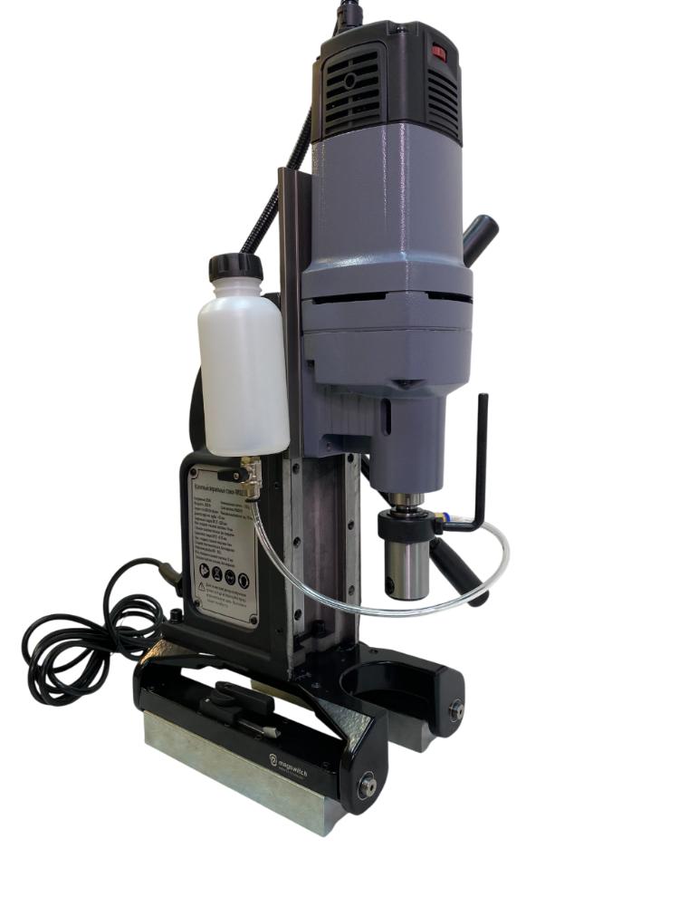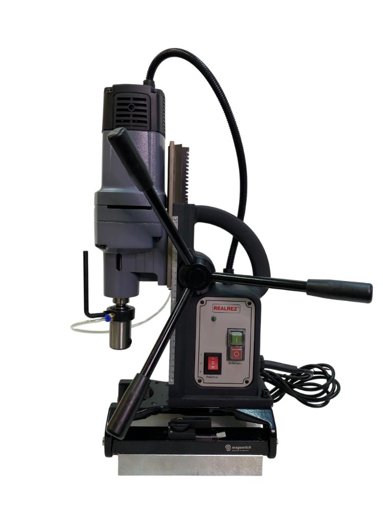 Магнитный сверлильный станок REALREZ RMD23 ТUBE 1800W — это переносной сверлильный станок с основанием на двух независимых постоянных магнитах для сверления на трубах, выгнутых и вогнутых поверхностях. Станок подходит для сверления большого количества отверстий диаметром до 55 мм, и, также будет надежен при использовании спиральных сверл диаметром до 23 мм. Диапазон нарезания резьбы M6-M22.