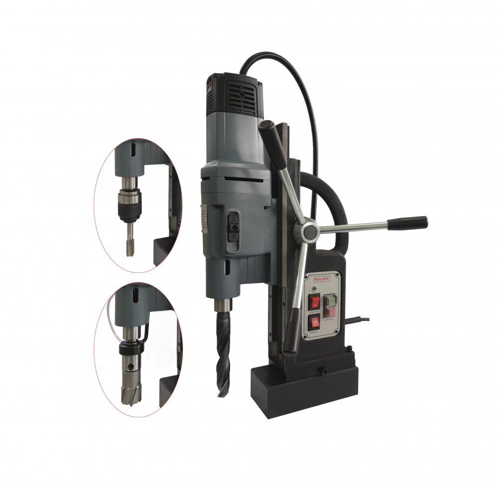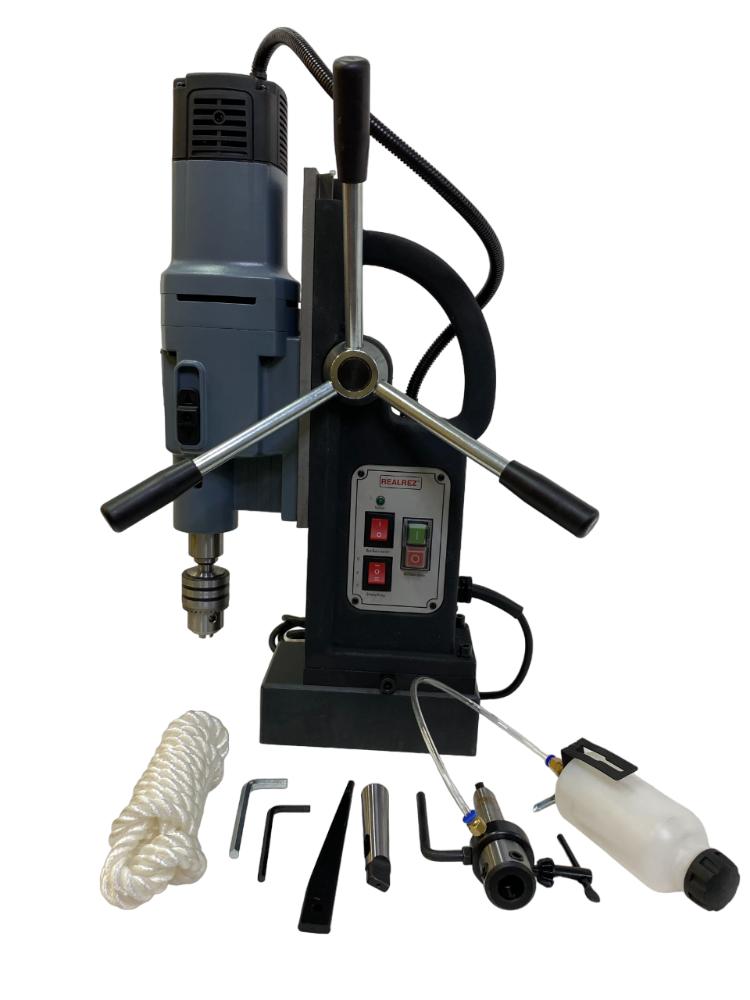Магнитный сверлильный станок REALREZ RMD32Т 2000W – это переносной сверлильный станок на магнитном основании предназначен для промышленного использования, сверления большого количества отверстий диаметром до 100 мм, и, также будет надежен при использовании спиральных сверл диаметром до 32 мм.