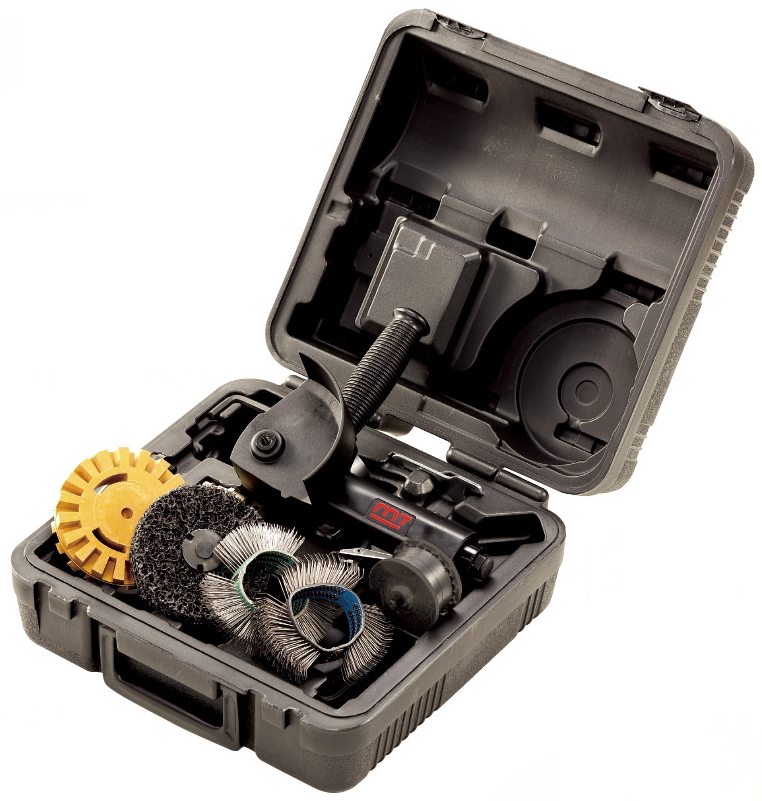 Машинка системы MBX для удаления ржавчины c комплектом принадлежностей MIGHTY SEVEN QB-0808 предназначена удаления с металлических поверхностей ржавчины, старых покрытий, загрязнений, окалины, всевозможных защитных покрытий, наклеек, а также зачистки поверхностей изделий из резины, металла, пластмассы, камня и дерева.