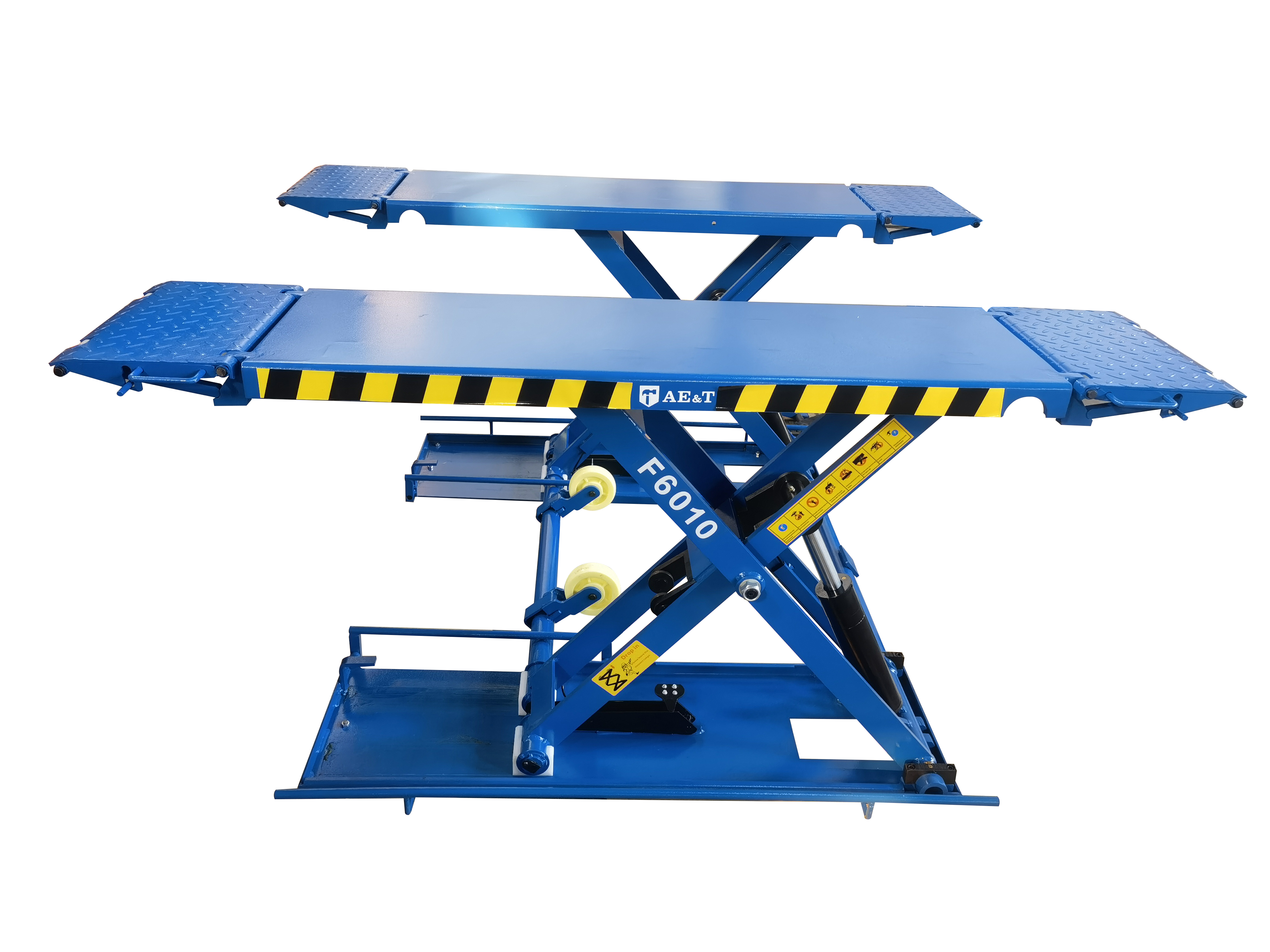 Ножничный подъемник F6010 используется для подъема автомобилей весом до 3 000 кг в условиях автосервиса либо вне помещений – под навесом. Он хорошо подходит для проведения технического обслуживания машин, в том числе слесарных работ. Устанавливается на бетонном полу без предварительной конструктивной подготовки основания, перемещается при помощи специального приспособления.