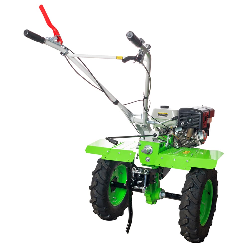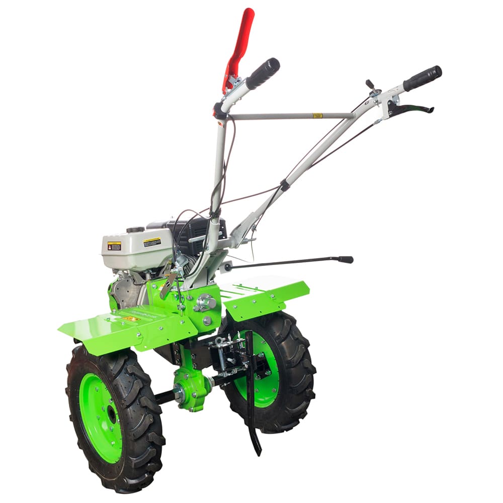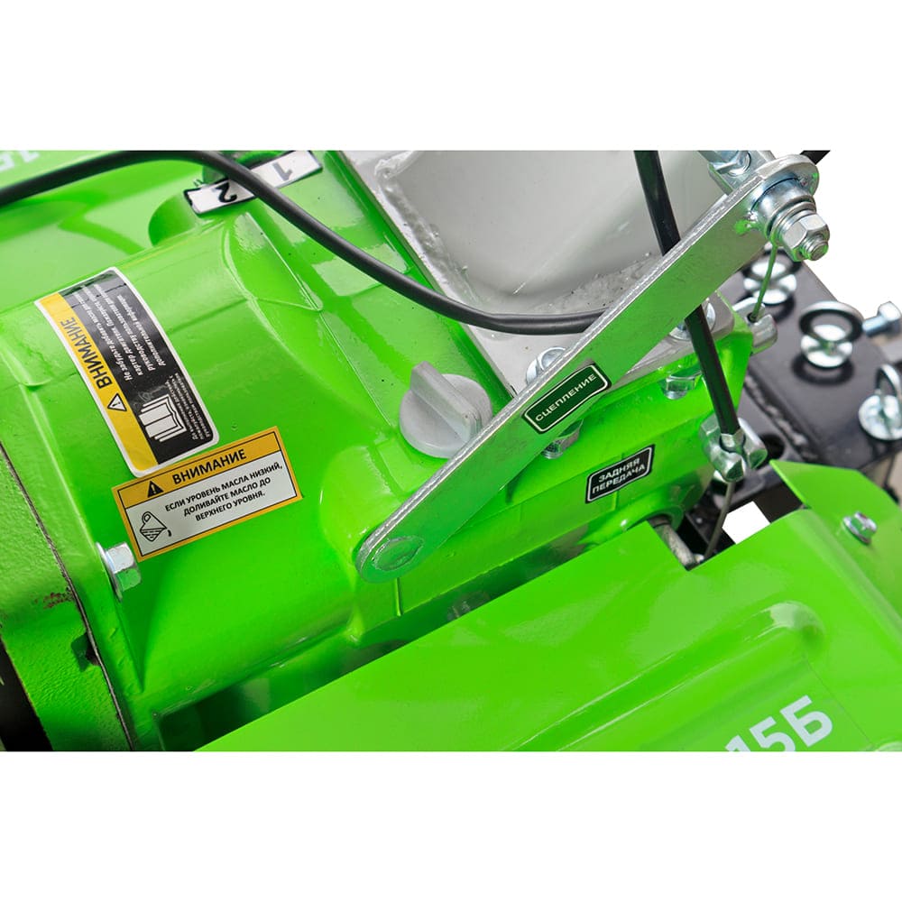 - Мощный шестерёнчатый редуктор в чугунном корпусе - способен выдержать серьезные нагрузки при работе с тяжёлыми почвами