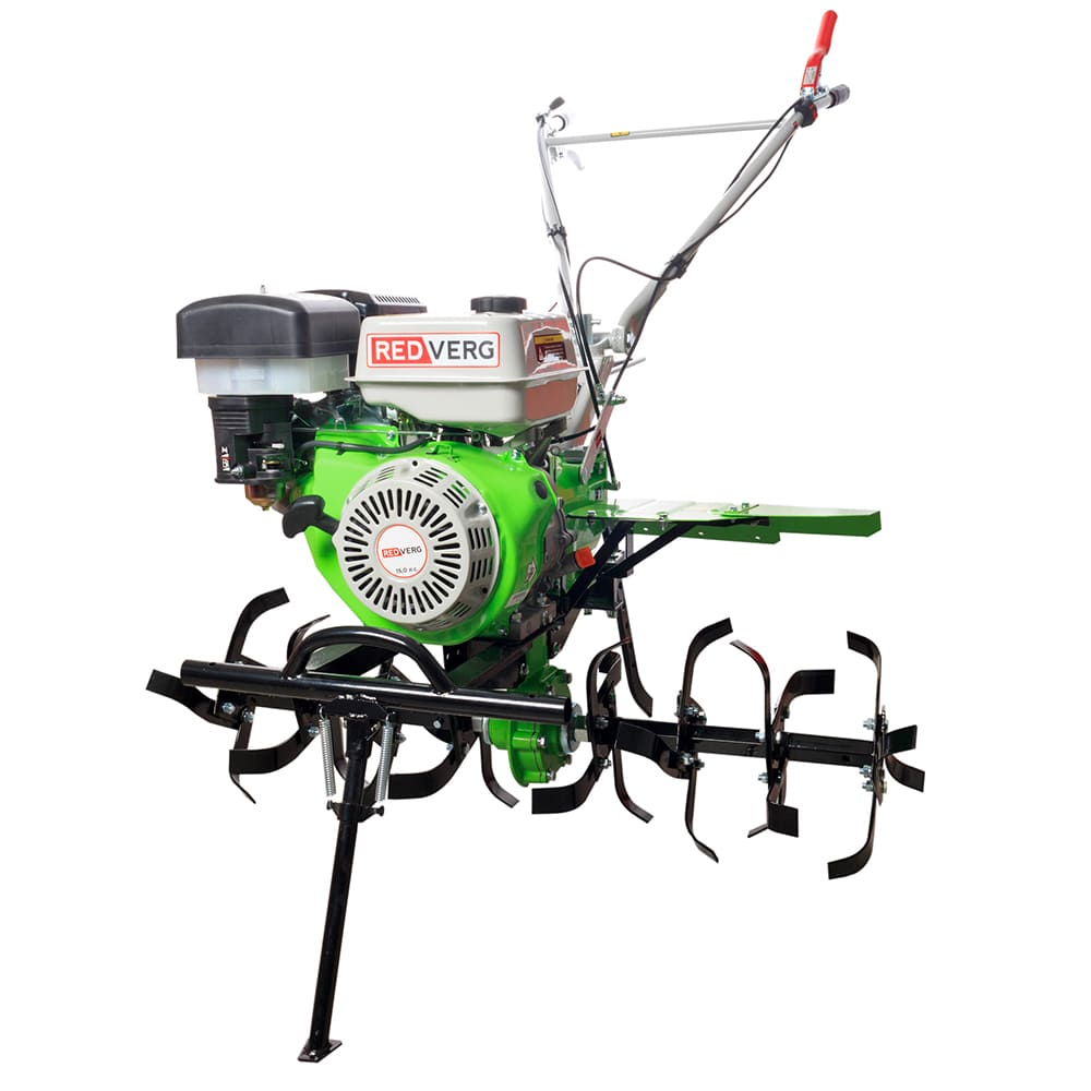 - Дополнительная складная опорная ножка обеспечивает устойчивое положение мотоблока при простоях