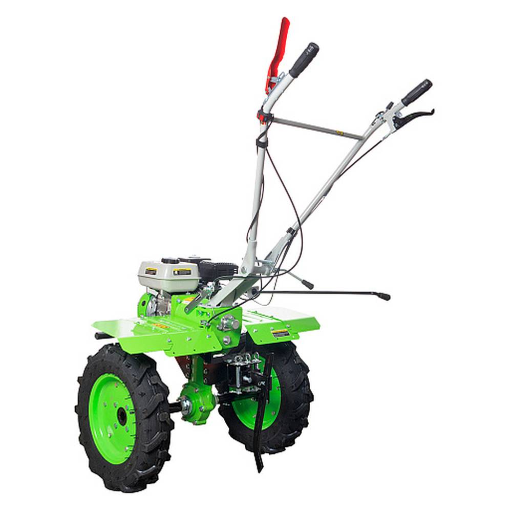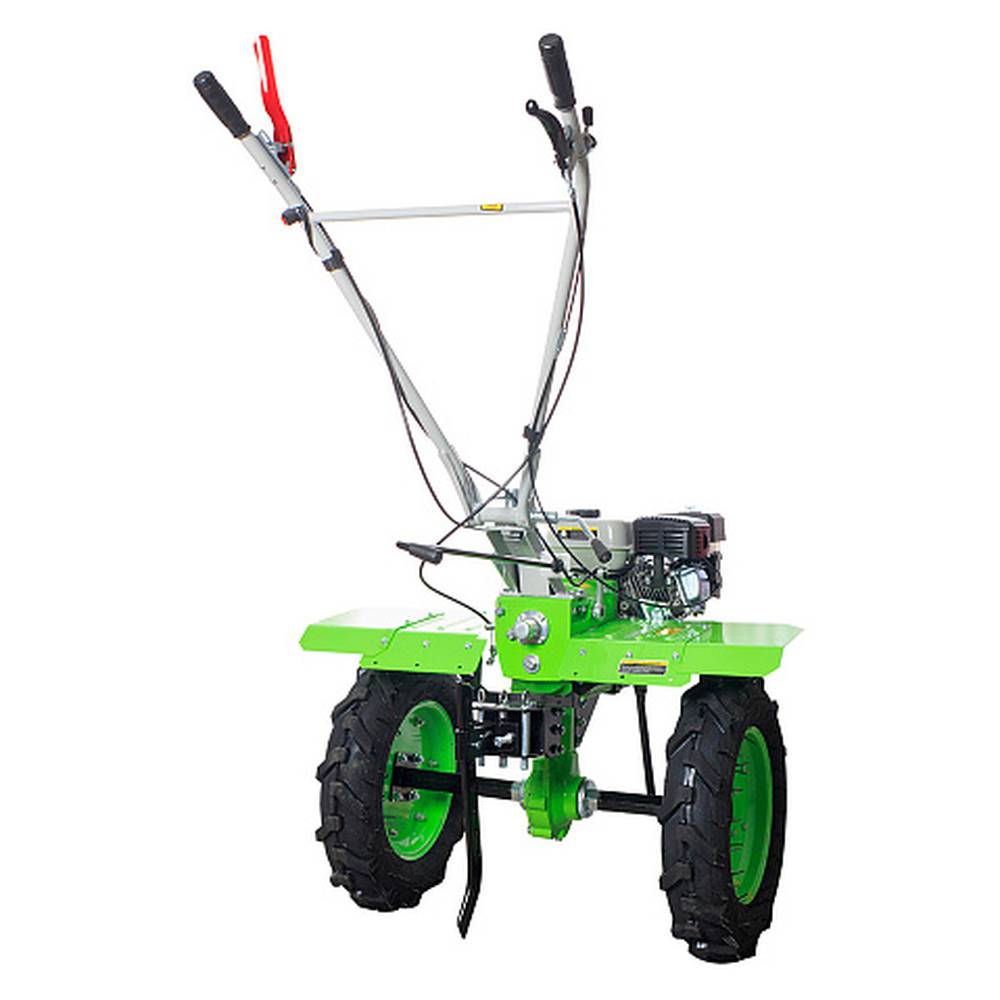 - Мощный шестерёнчатый редуктор в чугунном корпусе - способен выдержать серьезные нагрузки при работе с тяжёлыми почвами