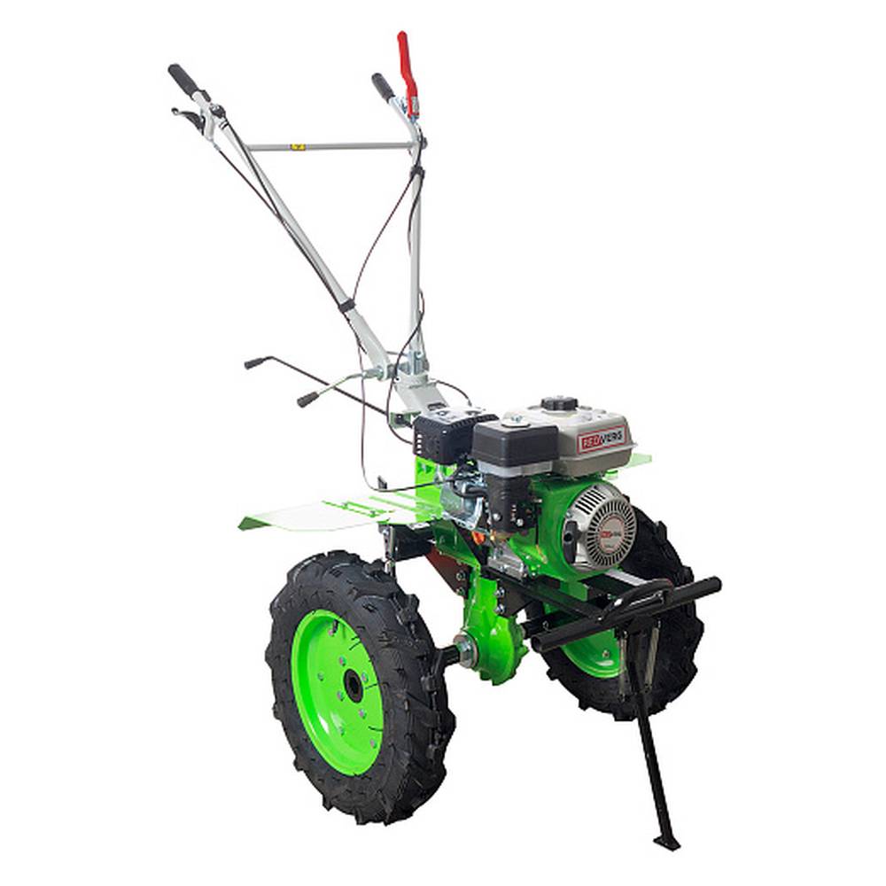 - Дополнительная складная опорная ножка обеспечивает устойчивое положение мотоблока при простоях