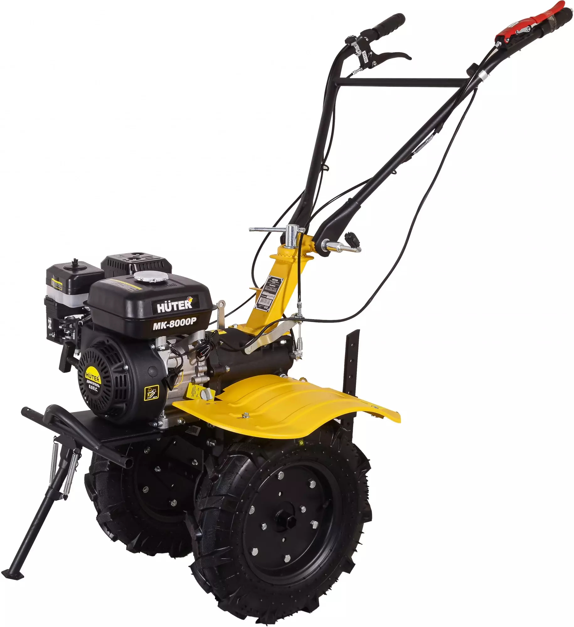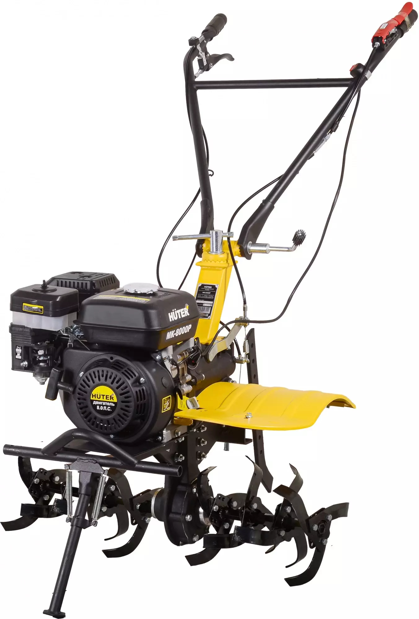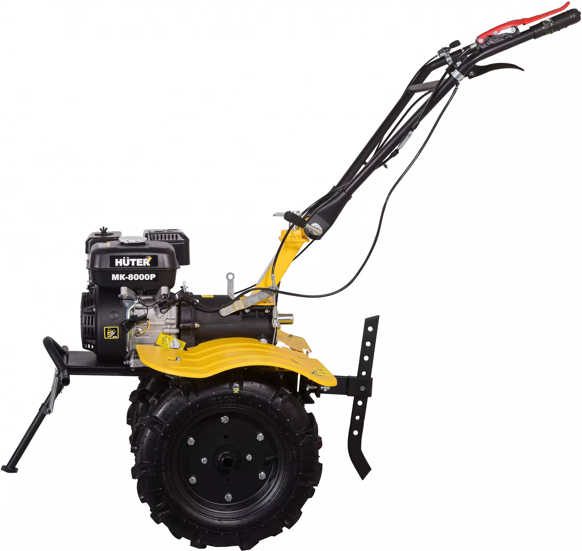Сельскохозяйственная машина Huter MK-8000P используется для обработки почвы - рыхления, боронования, выравнивания, прополки и других работ на приусадебных, огородных и садовых участках. Агрегат имеет бензиновый двигатель мощностью 8 лошадиных сил и три передачи, две вперед и одну назад. Для удобства оператора все переключатели находятся на ручках агрегата, а резиновые накладки обеспечивают удобное удержание. Металлический щиток предотвращает попадание грунта на оператора и двигатель. Ширина обработки 1 метр вместе с топливным баком в 3,6 литра позволяют обрабатывать большие территории без дозаправки.