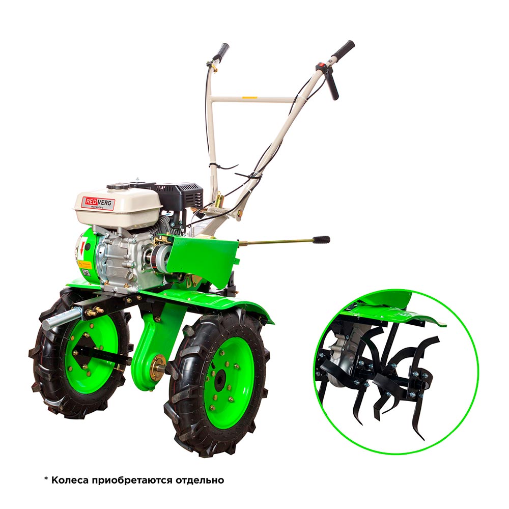 - Возможность установки колёс - расширяет функциональные возможности мотоблока и позволяет работать с дополнительным навесным оборудованим