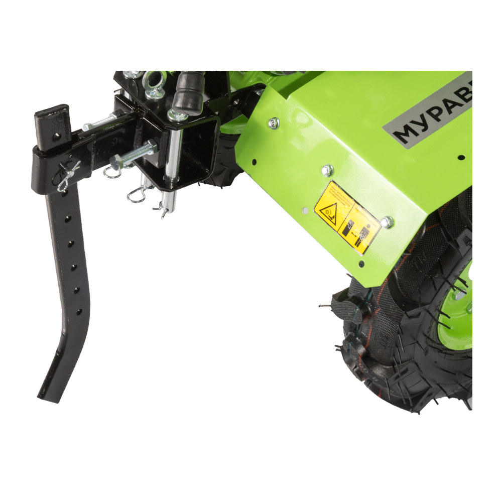 - Усиленная сцепка - позволяет оснастить аппарат плугом, телегой, картофелевыкапывателем и пр.