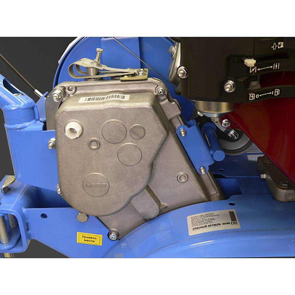 Мотоблок оснащен мотором мощностью 10 л.с. Объем топливного бака 3,2 л позволяет обрабатывать участки без частой дозаправки. Шестеренчато-цепной редуктор обеспечивает движение на 4 скоростях вперед и 2 назад.
