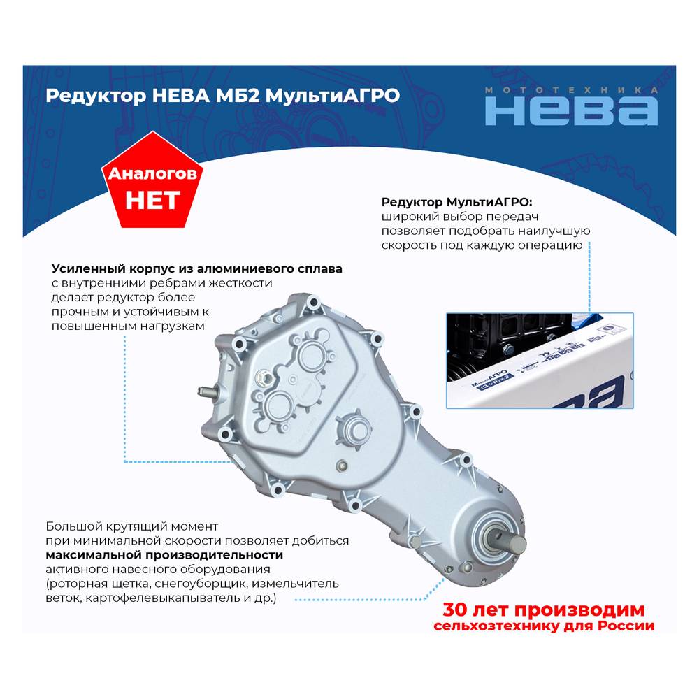 - Многоскоростной редуктор «МультиАГРО» - редуктор является собственной разработкой производителя и представляет собой шестеренчато-цепной механизм, который позволяет мотоблоку достигать наибольшей производительности при выполнении каждой агротехнической и хозяйственной операции