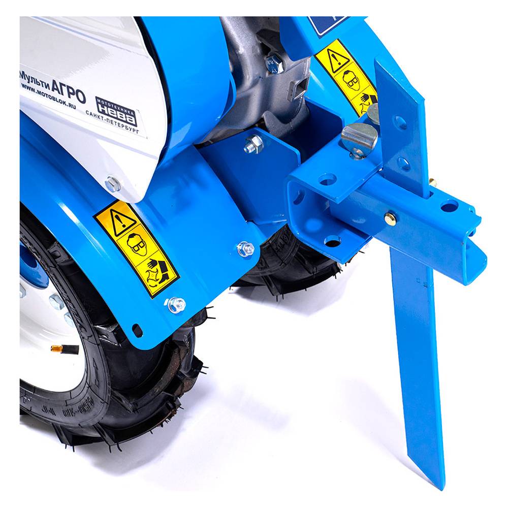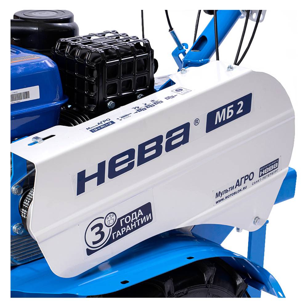 Мотоблок Нева МБ2 Мульти АГРО производит вспашку, культивацию, нарезку борозд, окучивание, прополку междурядий, посадку картофеля, выкапывание картофеля, уборку снега и мусора, кошение травы, перевозку грузов, колку дров. Бензиновый двигатель GB225 является одноцилиндровым, четырехтактным, имеет воздушное охлаждение и конструкцию верхнего клапана (OHV). 4 фрезы изготовлены из закаленной стали. Особый угол заточки позволяет их использовать для обработки всех типов почв.