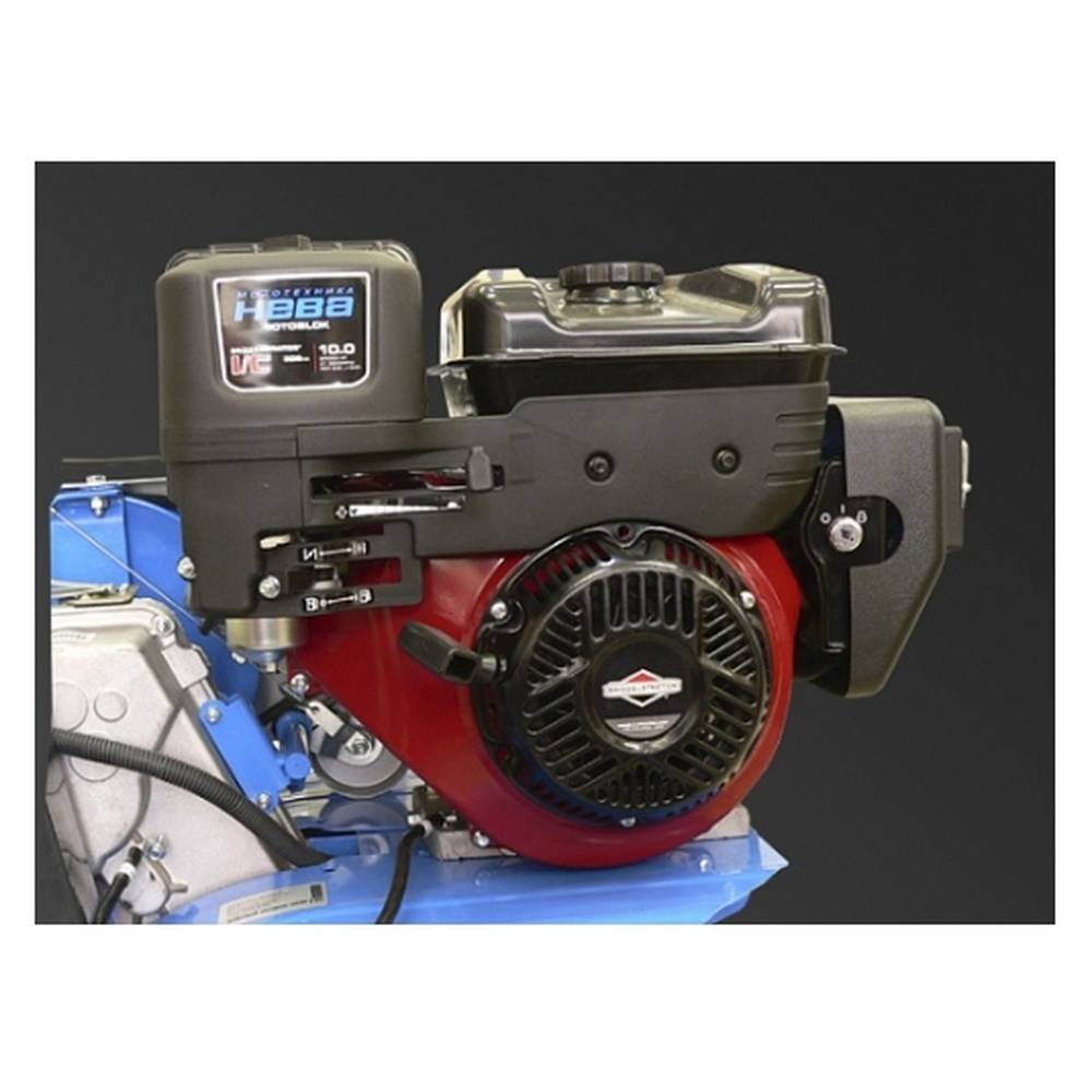 Мотоблок оснащен двигателем Vangard мощностью 6,5 л.с. Неприхотливый мотор легко запускается при температуре до -20 °С. Объем бака для топлива 3,1 л и расход бензина 1,69 л/час позволяют работать долгое время без перерыва на дозаправку. Дополнительный набор передач обеспечивают движение на 6 скоростях вперед и 2 назад, позволяя подстроиться под особенности своего участка.