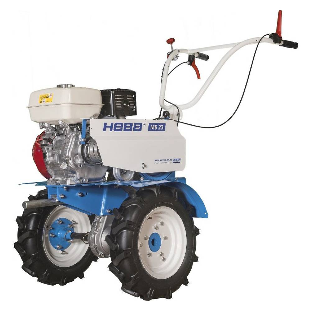 Функция разблокировки одного из колес, широкие пневматические шины и широкая горловина топливного бака делают работу комфортной.