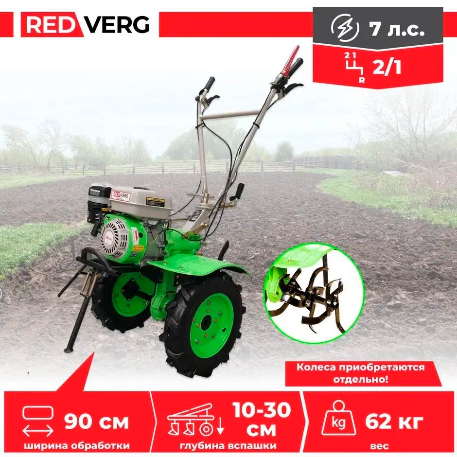 - Возможность установки колёс - расширяет функциональные возможности мотоблока и позволяет работать с дополнительным навесным оборудованим