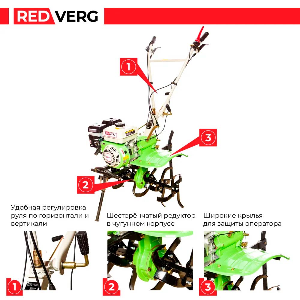 - Мощный 4-х тактный двигатель - развивает высокий крутящий момент и при этом имеет пониженный уровень шума и выхлопов, а также низкий расход топлива