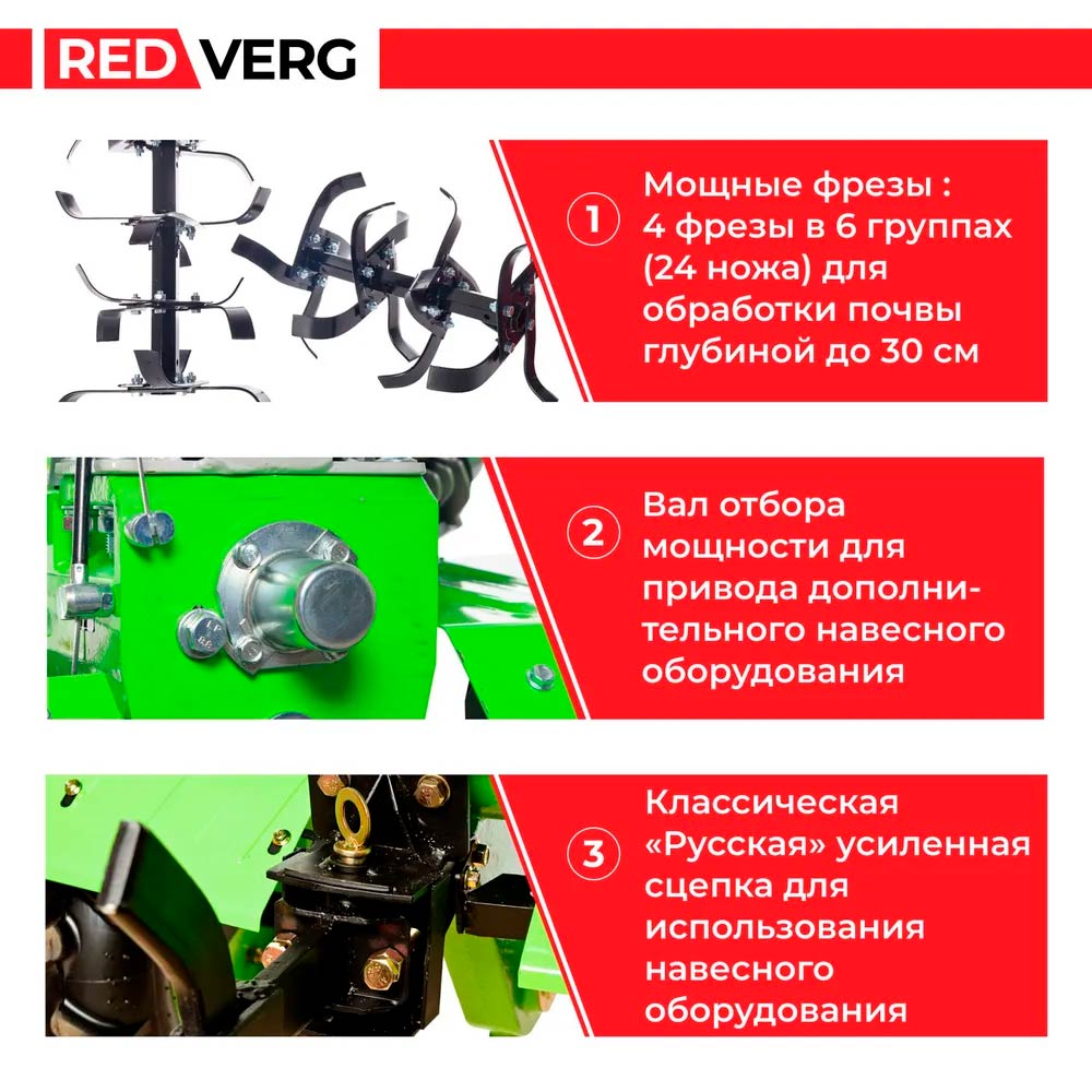 - Мощные фрезы - 4 фрезы в 6 группах для обработки почвы глубиной до 30 см