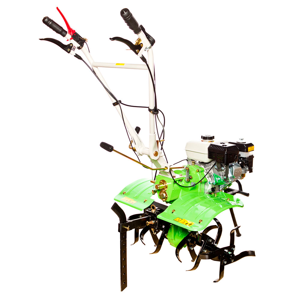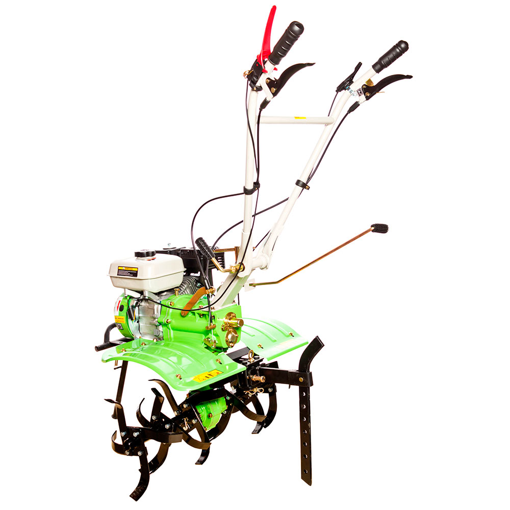 - Дополнительная складная опорная ножка обеспечивает устойчивое положение мотоблока при простоях