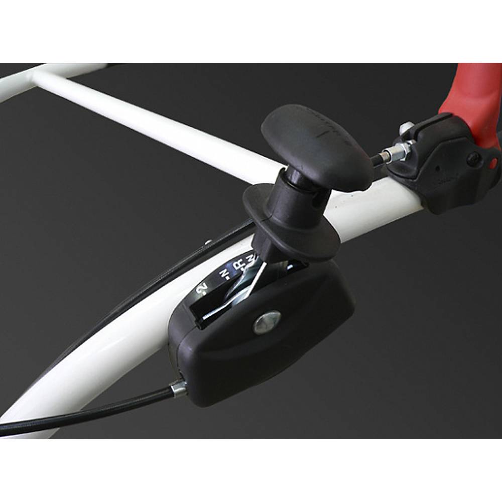 На мотокультиватор можно установить 4-6 фрез. Ширина обработки почвы с фрезами — 65-100 см, глубина 16 см. Сдвоенное опорное колесо помогает передвигать культиватор с фрезами по участку. Регулируемая по высоте и углу рукоятка, а также переключение передач на одной из рукояток делают работу комфортной.