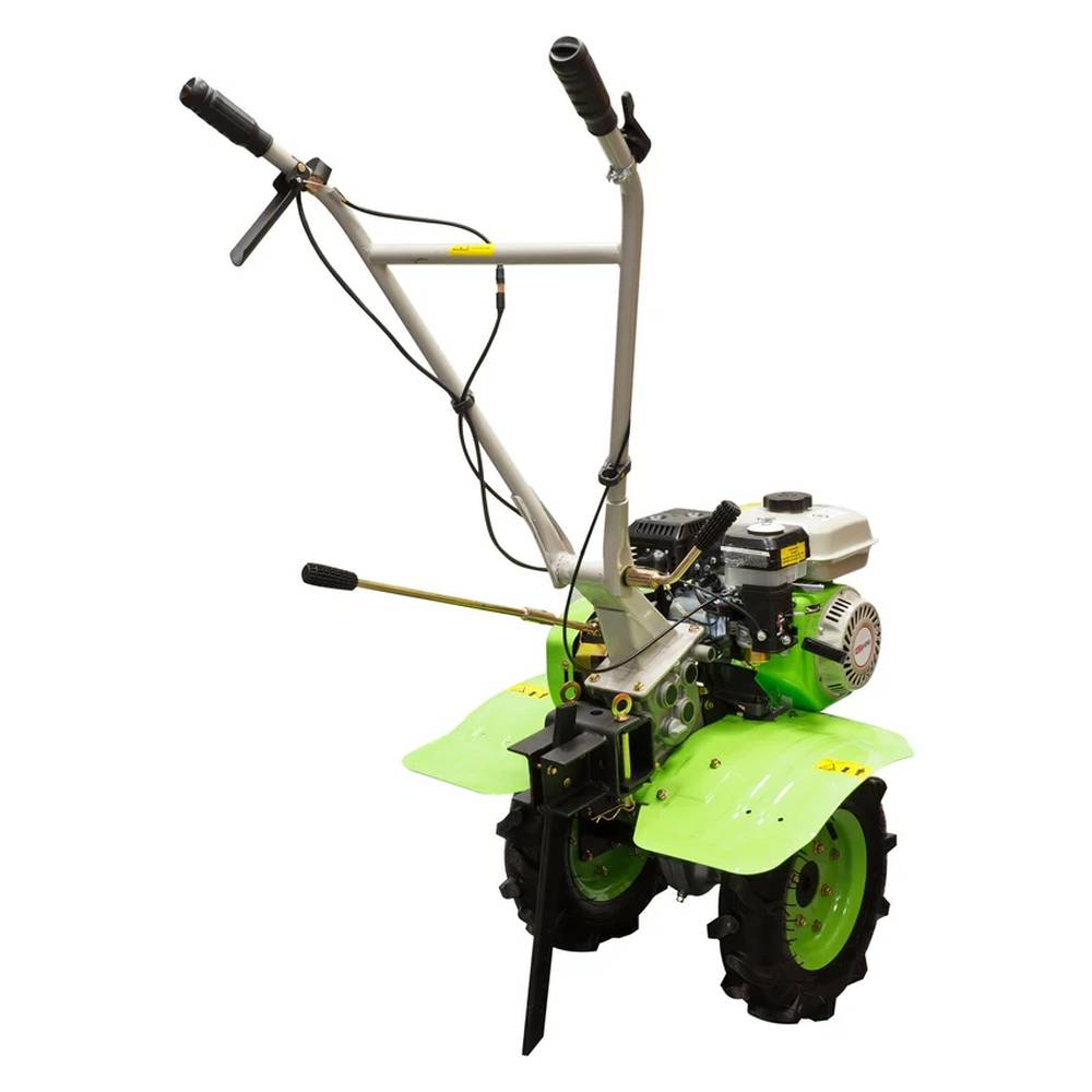 Мощный двигатель передает крутящий момент через цепной редуктор с корпусом из алюминиевого сплава. Сцепное устройство адаптировано под всё навесное оборудование отечественного производства. Рулевая колонка легко регулируется по вертикали.