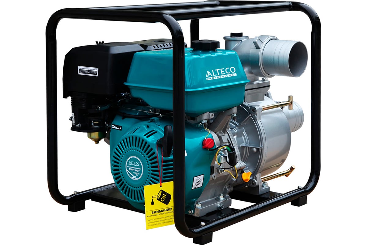 Бензиновая мотопомпа ALTECO Professional AWP100T 13521 оснащена двигателем объемом 389 см3, производительность которого 69 м3/час.