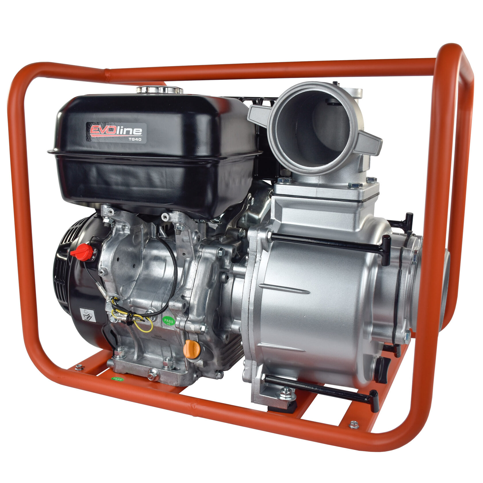 Водяная помпа EVOline TG 40 для перекачки грязной воды с максимальным размером частиц до 25 мм. Данная насос имеет очень высокую производительность в 75 куб.метров в час (1250 л/мин), таких показателей удалось достичь за счет увеличенных диаметров патрубков (100 мм) и мощного двигателя Zongshen GB 420 с максимальной мощностью 15 л.с.