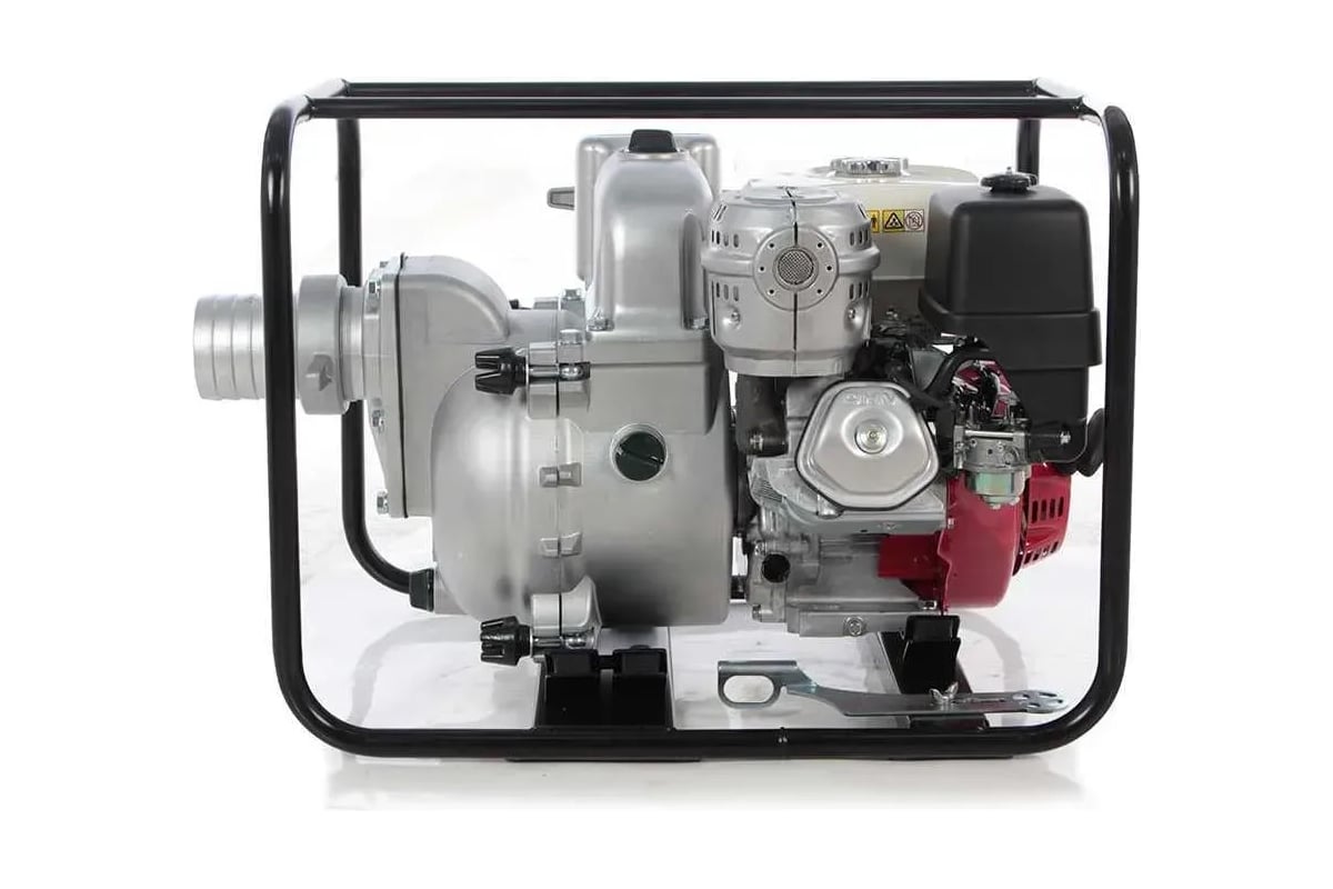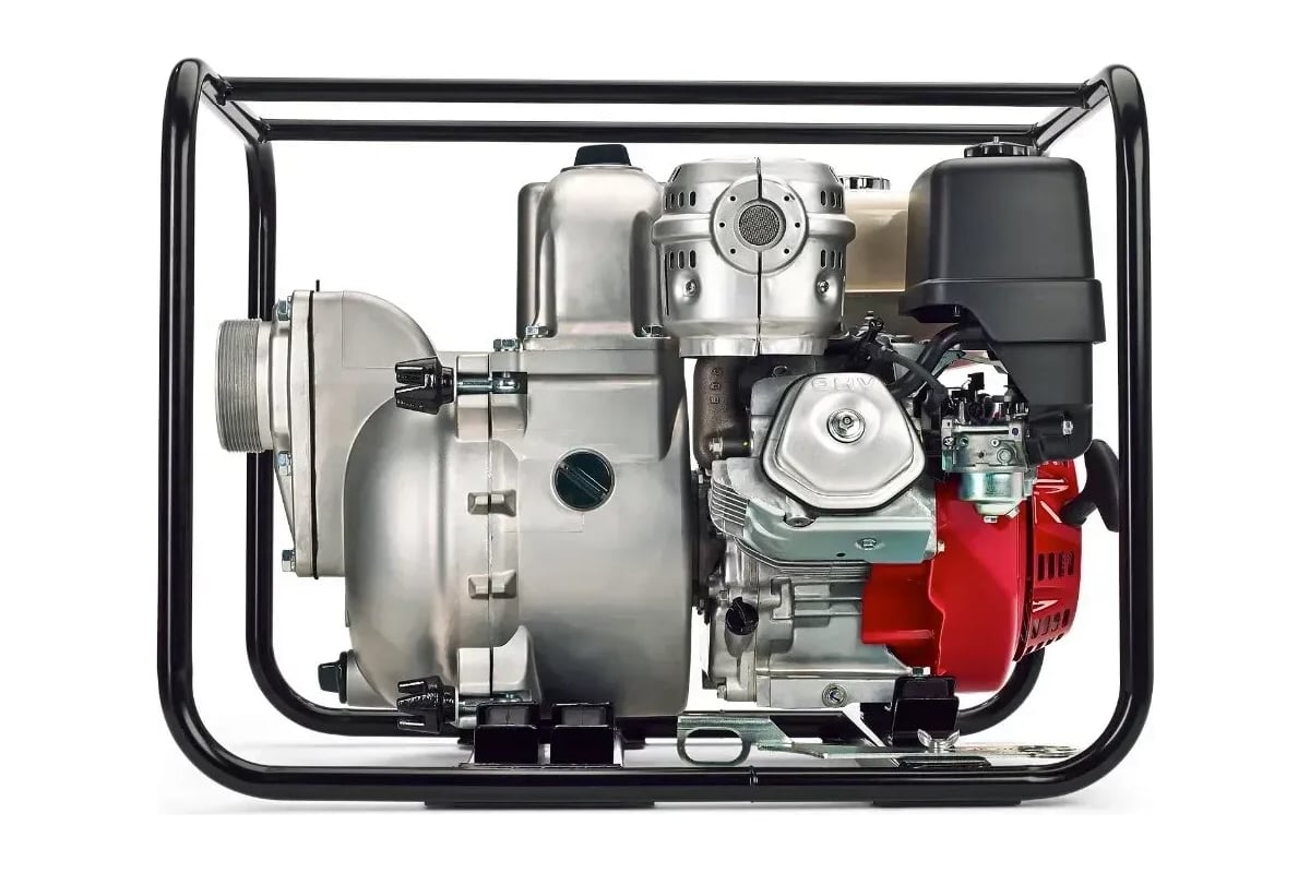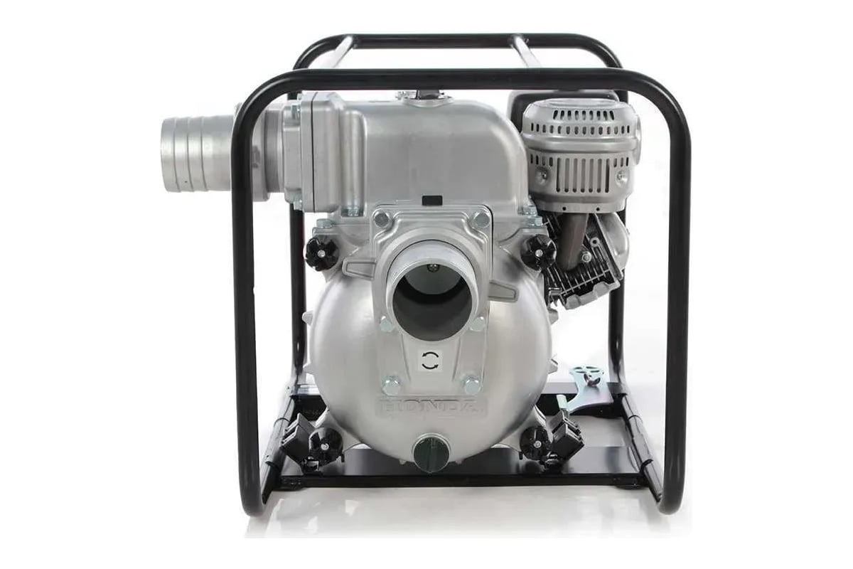 Скорость перекачивания бензинового насоса для воды Honda WT40 XK3 достигает значения 1600 л в минуту и позволяет быстро и эффективно справляться с любой работой. Диаметр входного и выходного патрубков одинаков и равен 100 мм. Максимальная высота подачи составляет 26 м, а давление – 2,5 бар.