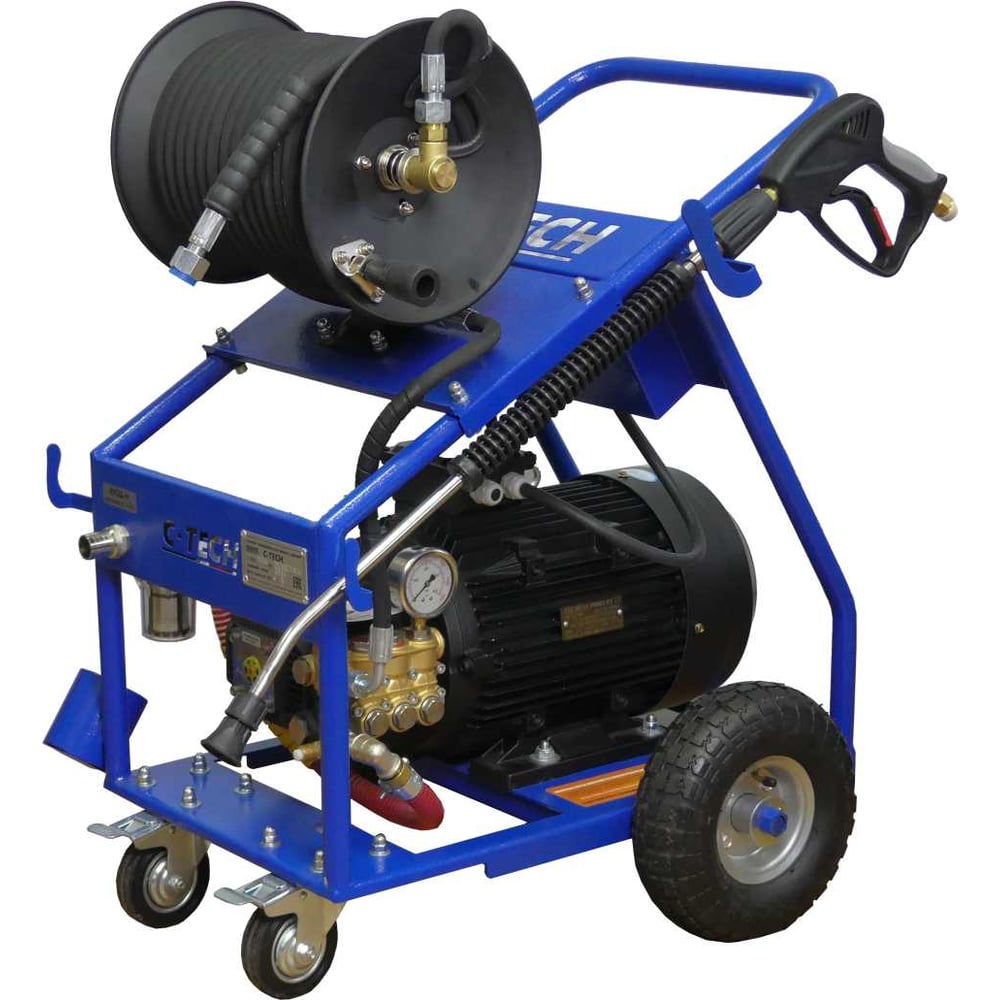 Мойка высокого давления для грузовой и спецтехники C-TECH профессиональная, мобильная NTR2515ET3E4BP2DFMT-30-SF60-TN90 - это мобильный, профессиональный моющий аппарат в расширенной комплектации. Помимо мойки транспорта и оборудования может применяться для нанесения моющих растворов, при помощи пенокомплекта. Установка так же применяется для очистки особых загрязнений, ржавчины и краски при помощи специальной пескоструйной насадки. Так же моечную станцию применяют для прочистки и удаления засоров в канализационных и прочих трубах при помощи специальных каналопромывочных устройств. Гидродинамическая установка подходит для очистки сложных загрязнений и предназначена для профессионального применения. Плунжерный насос имеет клапанный блок из латуни и керамические/металлокерамические плунжера, что позволяет работать аппаратом долгое время без риска подогрева. Насос имеет высокий показатель работоспособности и ремонтопригодности. На раме установлены поворотные ролики со стопором для удобства перемещения и эксплуатации.